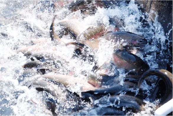 「富士山の水」だからこそできる、白身の美しいホワイト富士山サーモン。 富士山サーモン株式会社では、一年半育てたミドルサイズ(800〜1100g)のサーモンの販売・出荷をしています。クセもなく程よいサイズで、甘みがあるためそのままお刺身でも、お料理していただいてもおいしくお召し上がりいただくことができます。 富士山サーモンの恵まれた環境 富士山サーモン株式会社のホワイト富士山サーモンはバナジウム水で有名な猪之頭湧水と芝川のほとりにある養殖場で育てられたニジマスです。一年を通して水温は11℃と一定で、この環境が安定した生産・供給を可能にしています。また、自然にに恵まれた豊かな環境なので、健康で美味しい魚が育ち、優しく上品な味わいとなります。 ホワイト富士山サーモンのお刺身は安心・安全! 寄生虫「アニサキス」は海産魚介類に寄生するため、ホワイト富士山サーモンは感染の心配がございません。安心してお召し上がりください。 休市日前日以外は弊社養殖池まで市場便、ヤマト便が毎日集荷に来られるので、ゴールドチェーンがしっかり繋がっています。 サイズは900g前後が入ります。