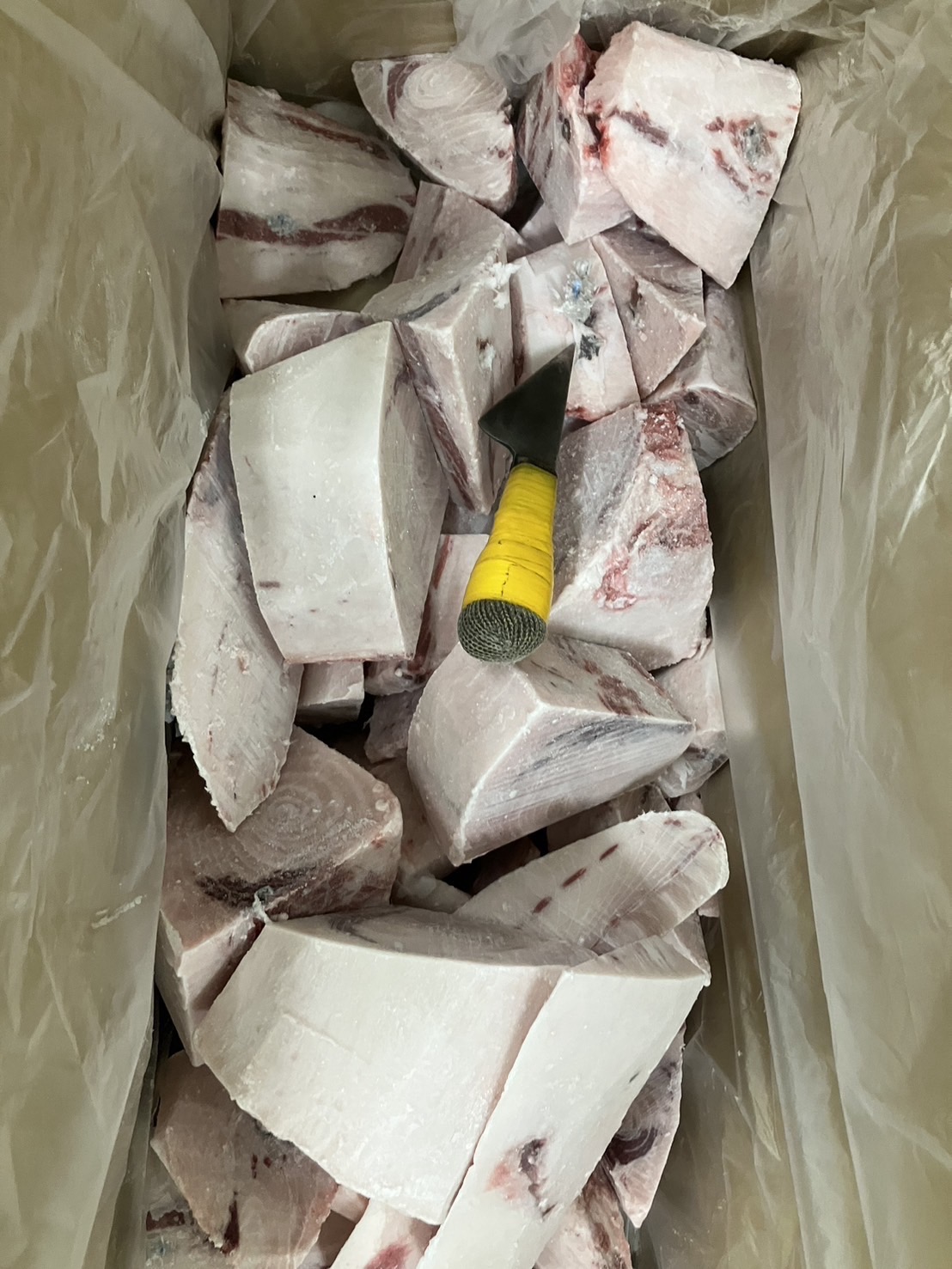 産地、台湾/インド洋ですが、他の産地、海域の箱もありますので、外箱シールの確認お願いします。 メカジキ(ブツ) 約10/15k箱 不定貫 チャンク、切身の製品作った時の端材です。 ブロック売り、切身、サイコロカットなどで。 メカジキの相場グングン上がってますので、単価的に面白い商材かと思います。 手間はかかりますが、、、。