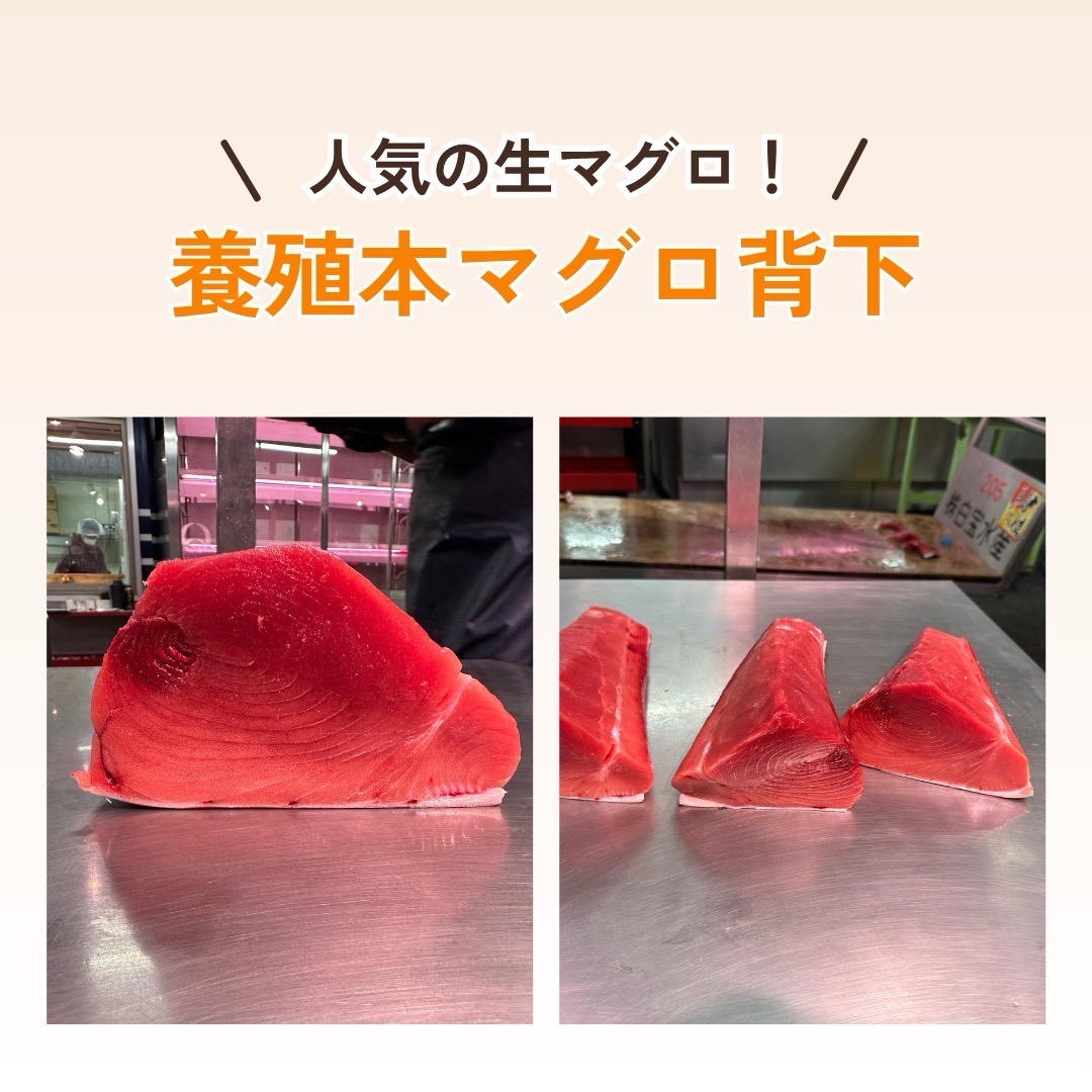 養殖本マグロの背下部分❣️ 少し筋が気になるものの他の部位とは 比べものにならないほどの大特価です💸💸 正真正銘の生本マグロを謳えます🍣 注文頂き次第切り立てをお届けします💪🐟🐟🔪🔪 産地は愛媛、高知他となりますのでご了承下さい!! マグロ専門問屋だからこそご注文後切り立ての品物をすぐに出荷可能!