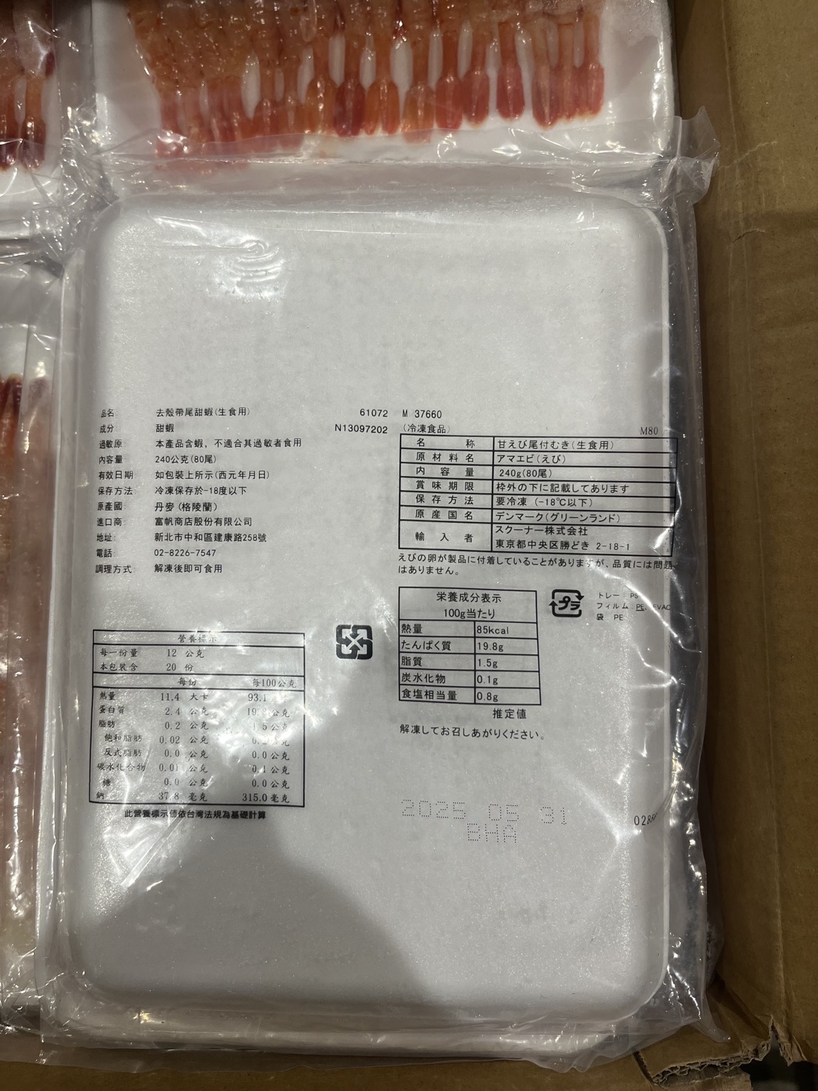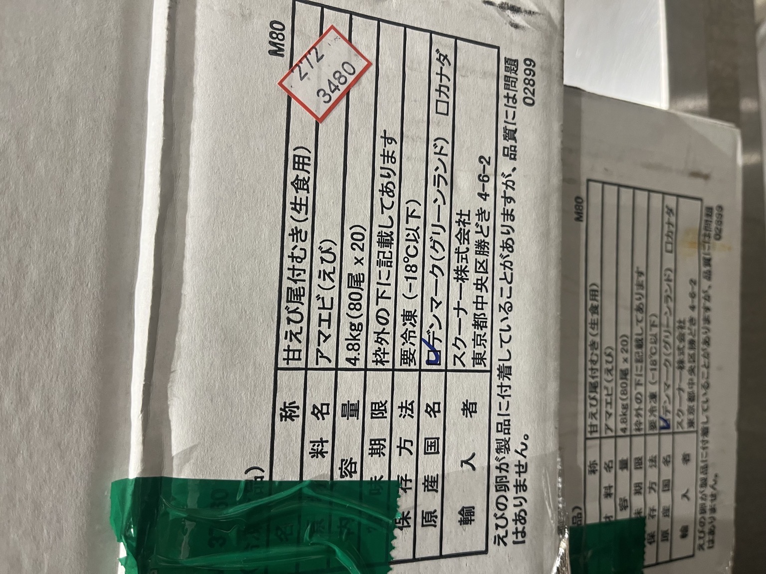 デンマーク 甘エビ尾月付むき80尾(240g) 20p入 身色、ちょびっと黄色くなってるところがあって、売れ残ってしまってます。 その為、投げ売りです。