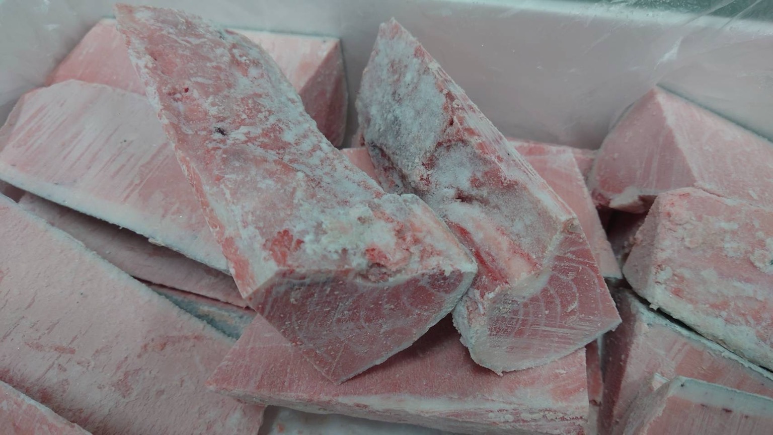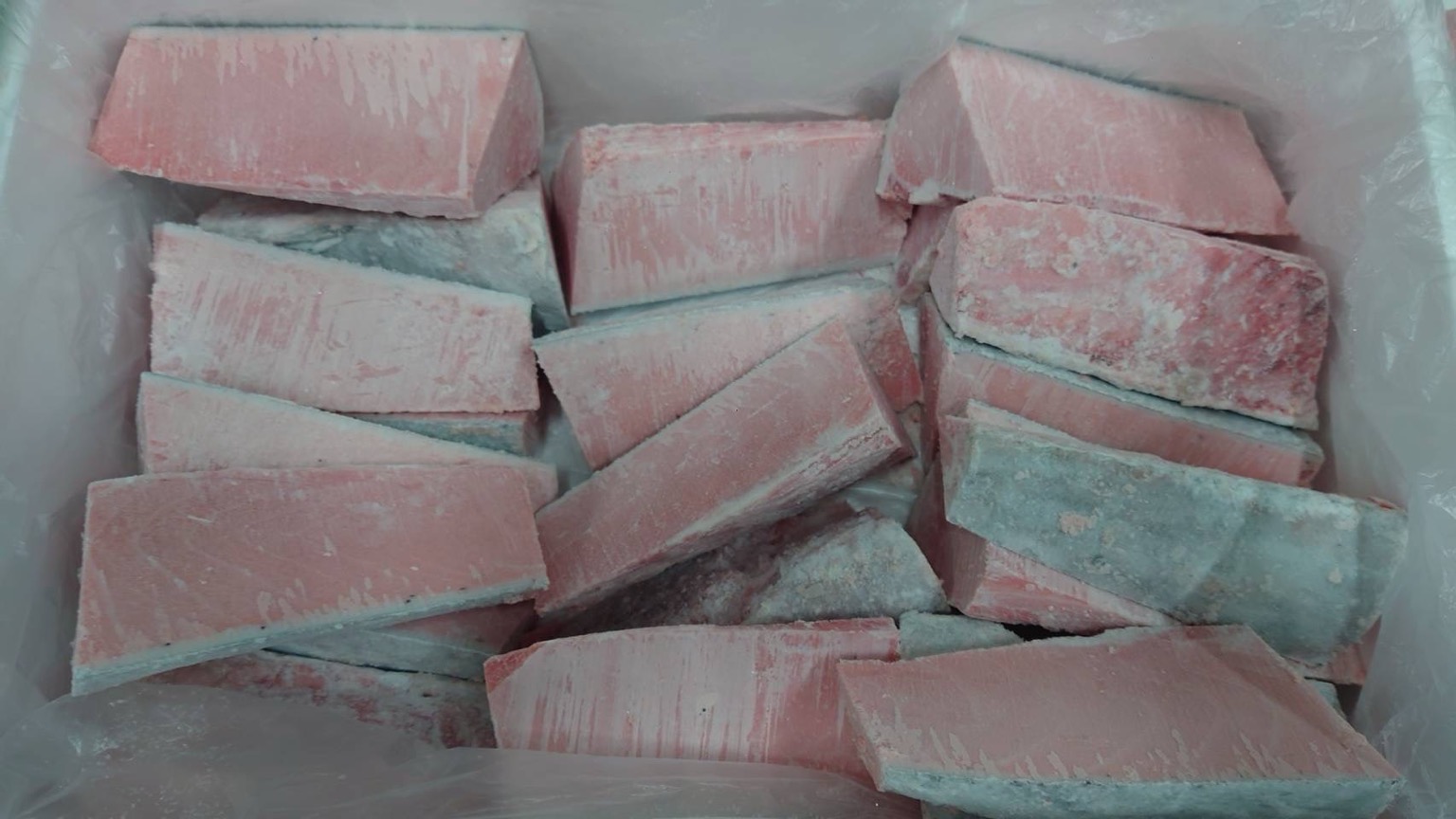 マルタ産 養殖本まぐろ端材 10k不定貫 腹カワラ、大トロ側の別れ身 脂あり、切落用に充分つかえます。