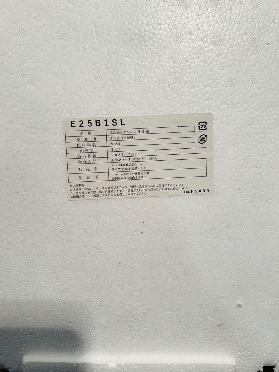 宮城県 太平洋沖漁獲 静岡県 焼津加工 釣り(B-1) 冷凍(東物)船上凍結 赤身カツオスキンレス2.5上 3k箱(本/約8〜10本) 1本(300〜360g位) 保存方法(-40℃以下) 2026.7月31日 温度帯変更(-18℃以下) 出荷日から1ヶ月目安 1番漁獲が多い8月下旬〜10月下旬の生カツオを厳選して冷凍しました。少しサイズは大きめですが赤身のキレイな品物です。