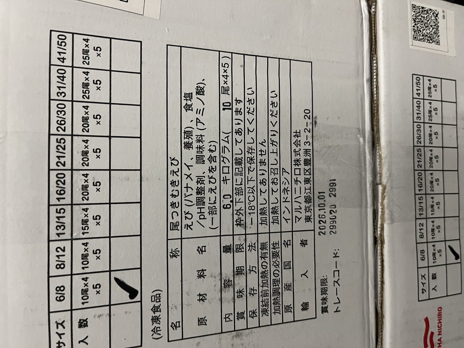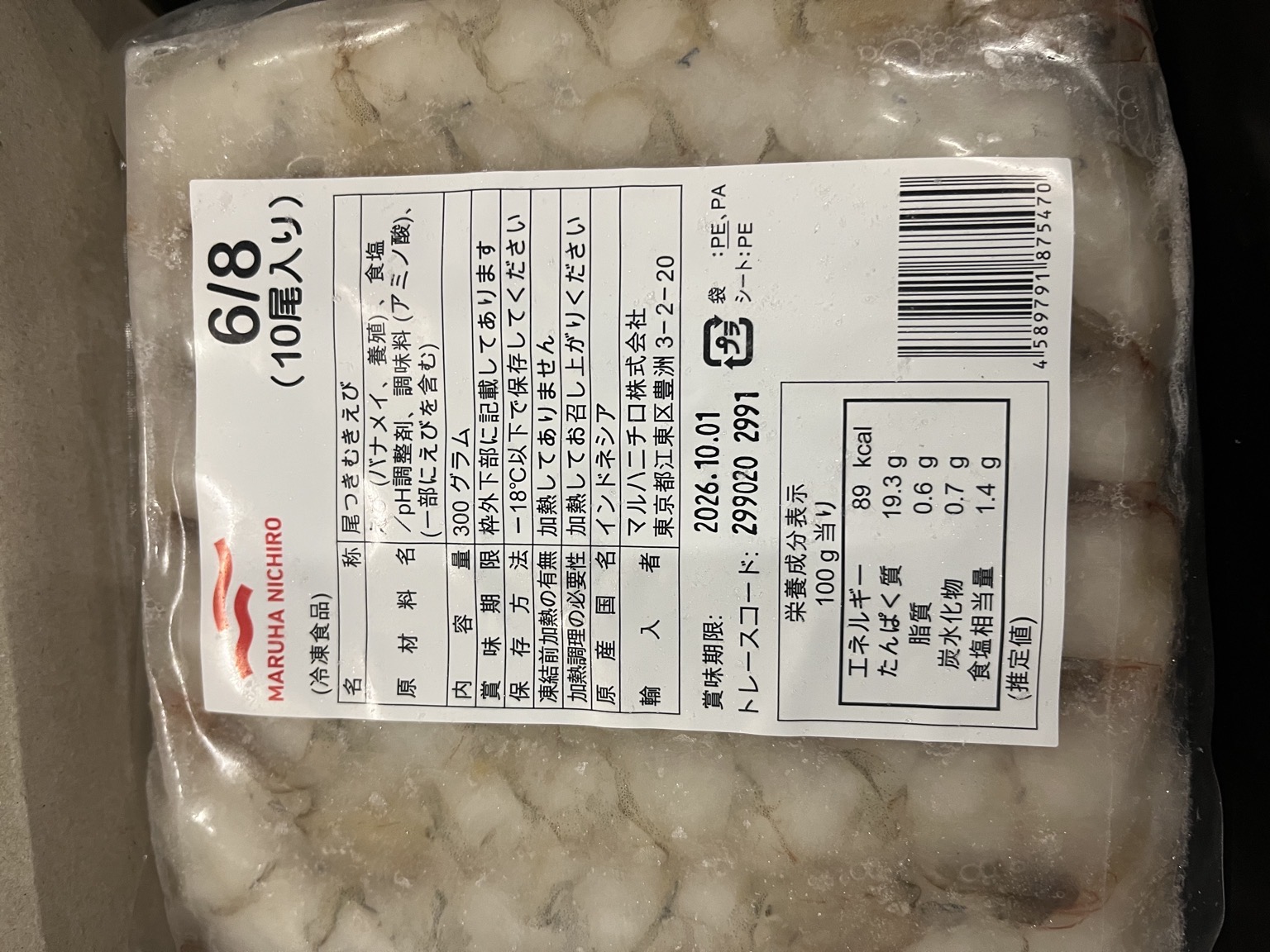 インドネシア 伸ばしエビVN6/8 10尾 300g 20p入