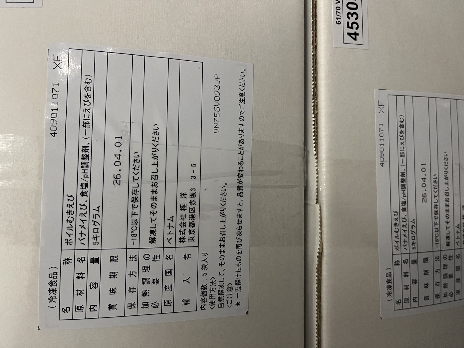 ベトナム産 バナメイ61/70 生食用可 ボイルむきえび1k 5×2