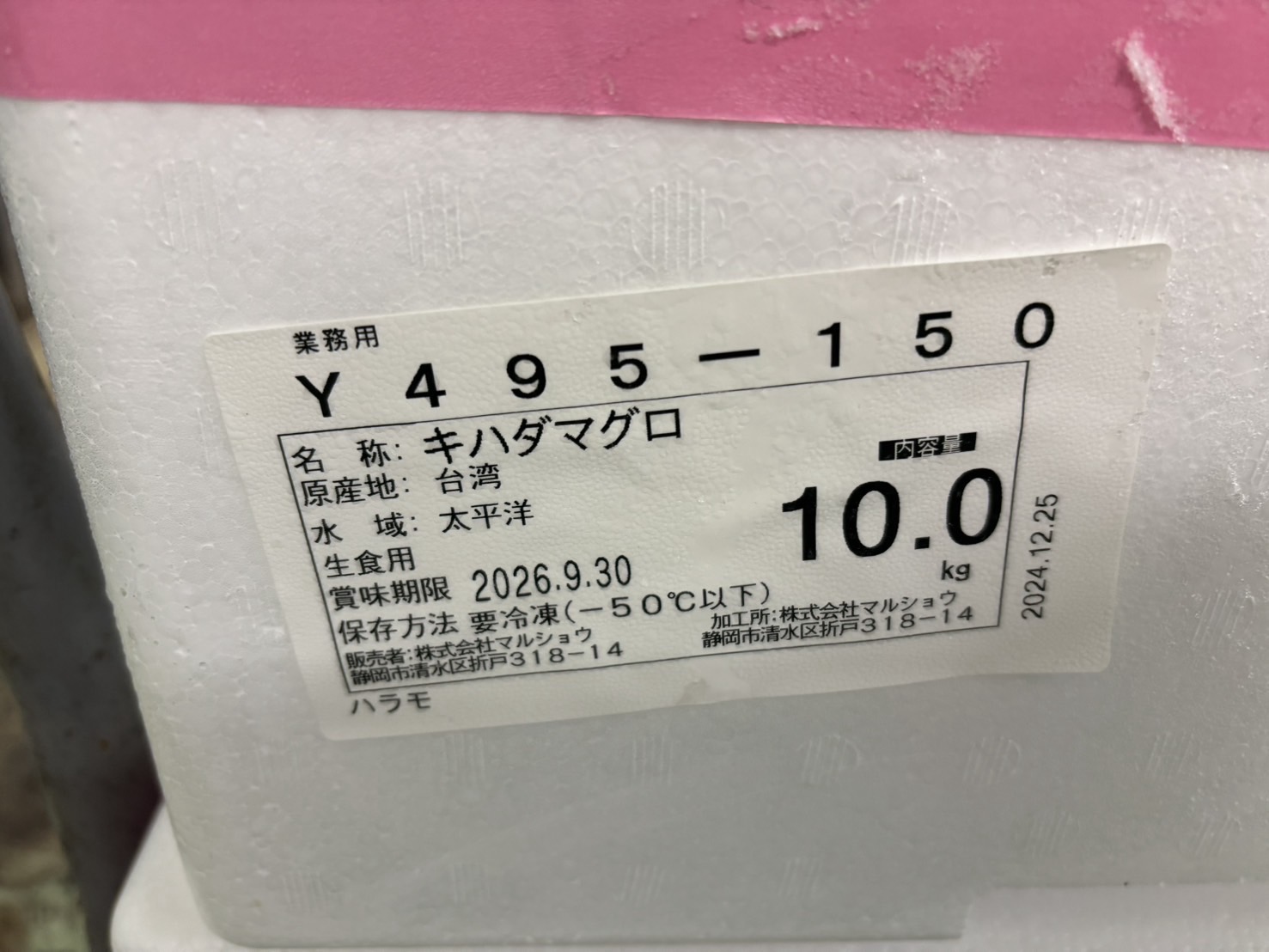 台湾、太平洋 キハダまぐろ15上ハラモ、生食用 10k定貫 オールクリーン 1本骨取り/薄皮取り