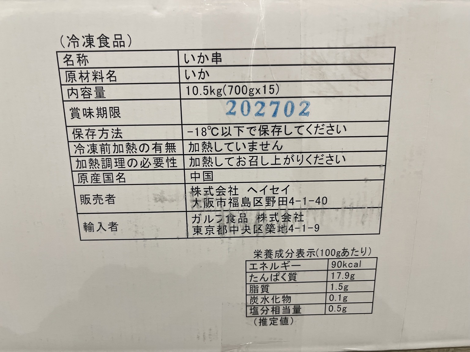 赤イカ冷凍いか串70g150入約10.5kg【業務用の鮮魚仕入れならウーオ】