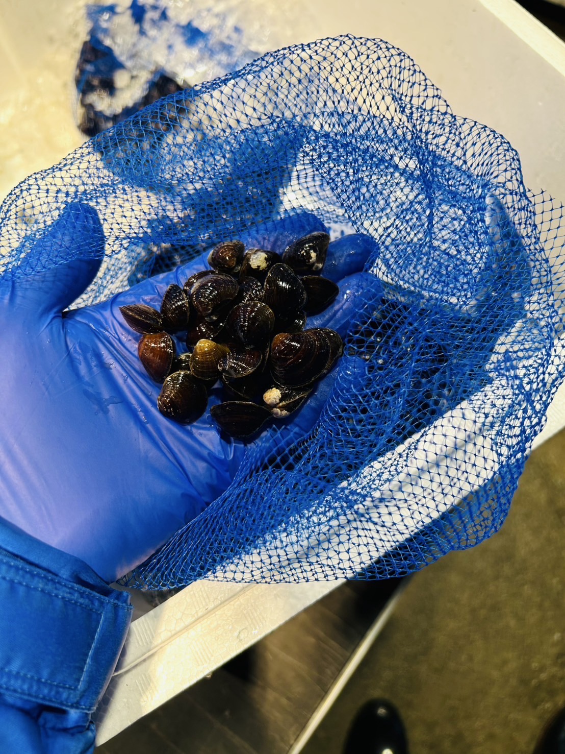 荷受けからの委託品の為 青森県産の十三湖のしじみ(S)です! 3kネット袋販売🉐 1個あたり3〜4g サイズは小さいですが、身入りはまずまずです。 かなり安いと思います!