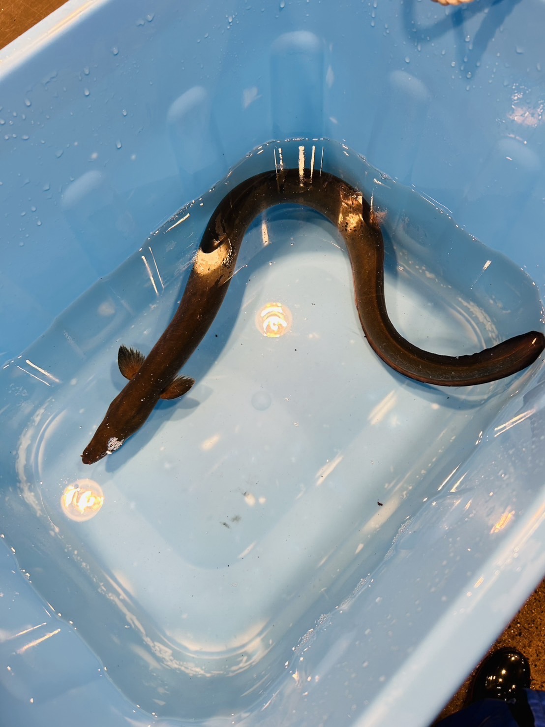 今年、☘️初水揚げ☘️ 活魚 天然うなぎ(日本うなぎ) 尾/800g ㌔は超えませんでしたが、太さはあり黄金色の綺麗な個体❗️ 水槽で活かし込んでます。 たも網漁で獲れた個体で、 通常、たも網はワカサギや川エビや白魚を獲る目的で設置してあるんですが、稀にそのワカサギや川エビなどを追って入る事があり、水揚げは自体は不安定ですが、太く綺麗な個体が多いです。 釣りではないので、針を飲んでる心配もなく 傷もほぼ無いと思います。