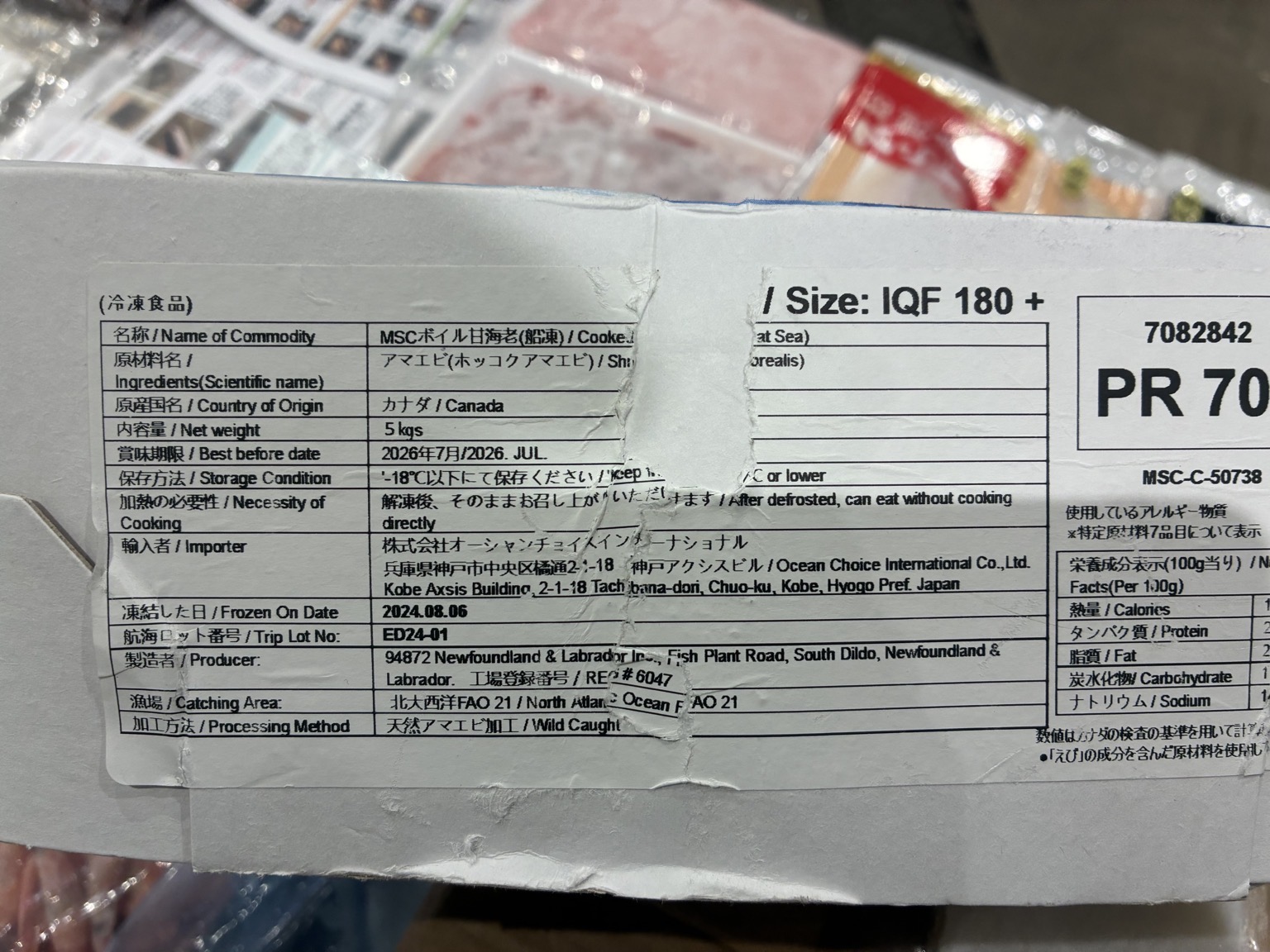 カナダ産 生食用ボイル殻付甘エビ 5k 1k180尾サイズ