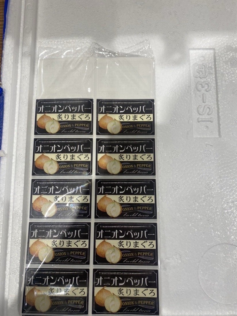 産地は加工地です。 炙りキハダまぐろオニオンペッパー PS物 5上 3k箱