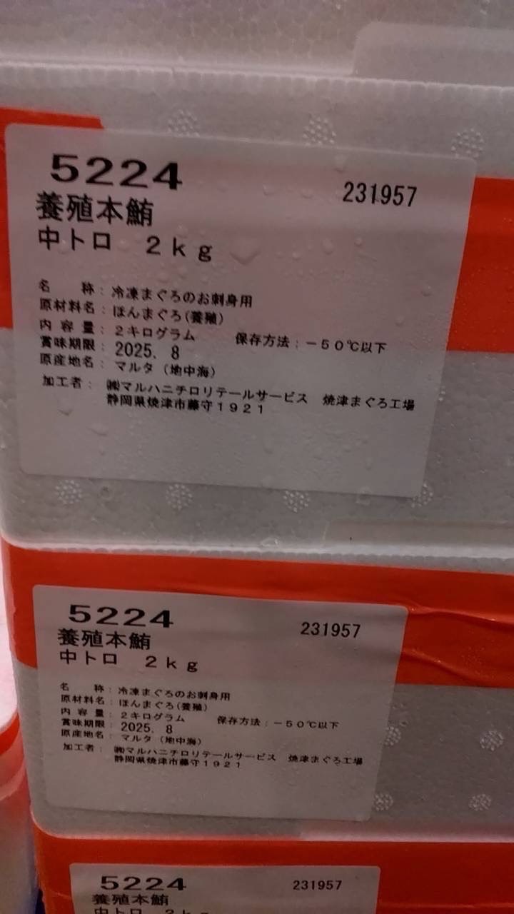 地中海 マルタ他 養殖本マグロ中トロ柵 6柵入 2k箱