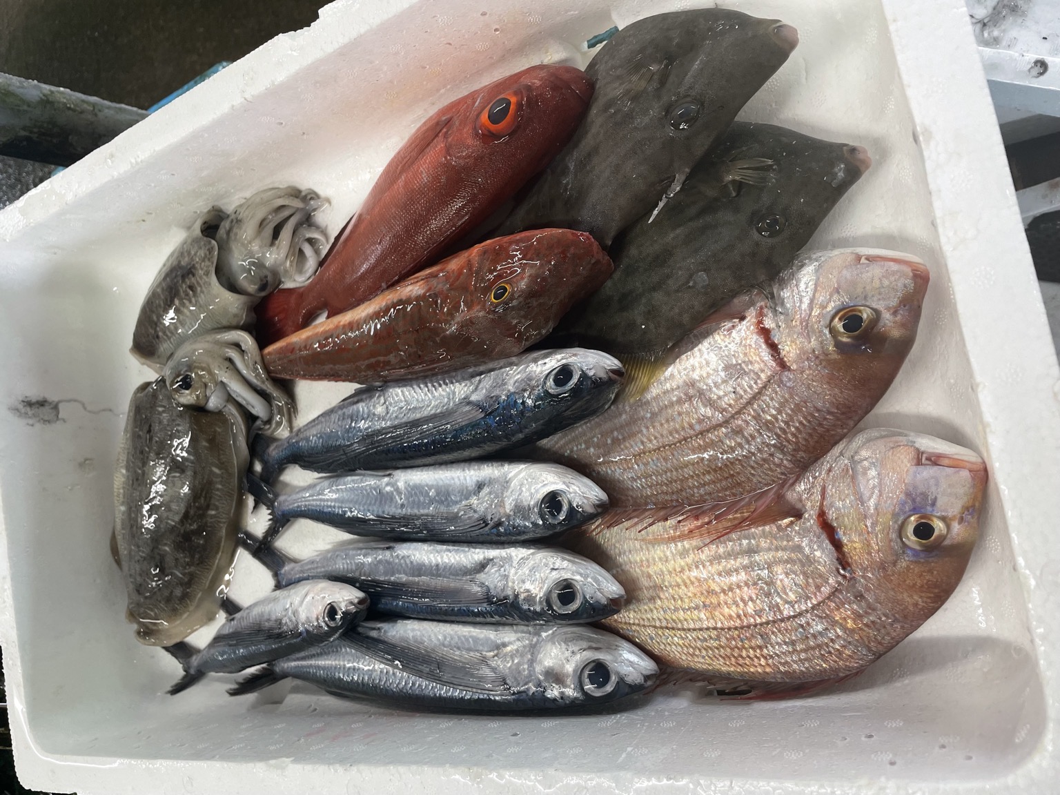 コウイカ、チダイ、トビウオ、ホウセキキントキ、ホウボウ、本カワハギ