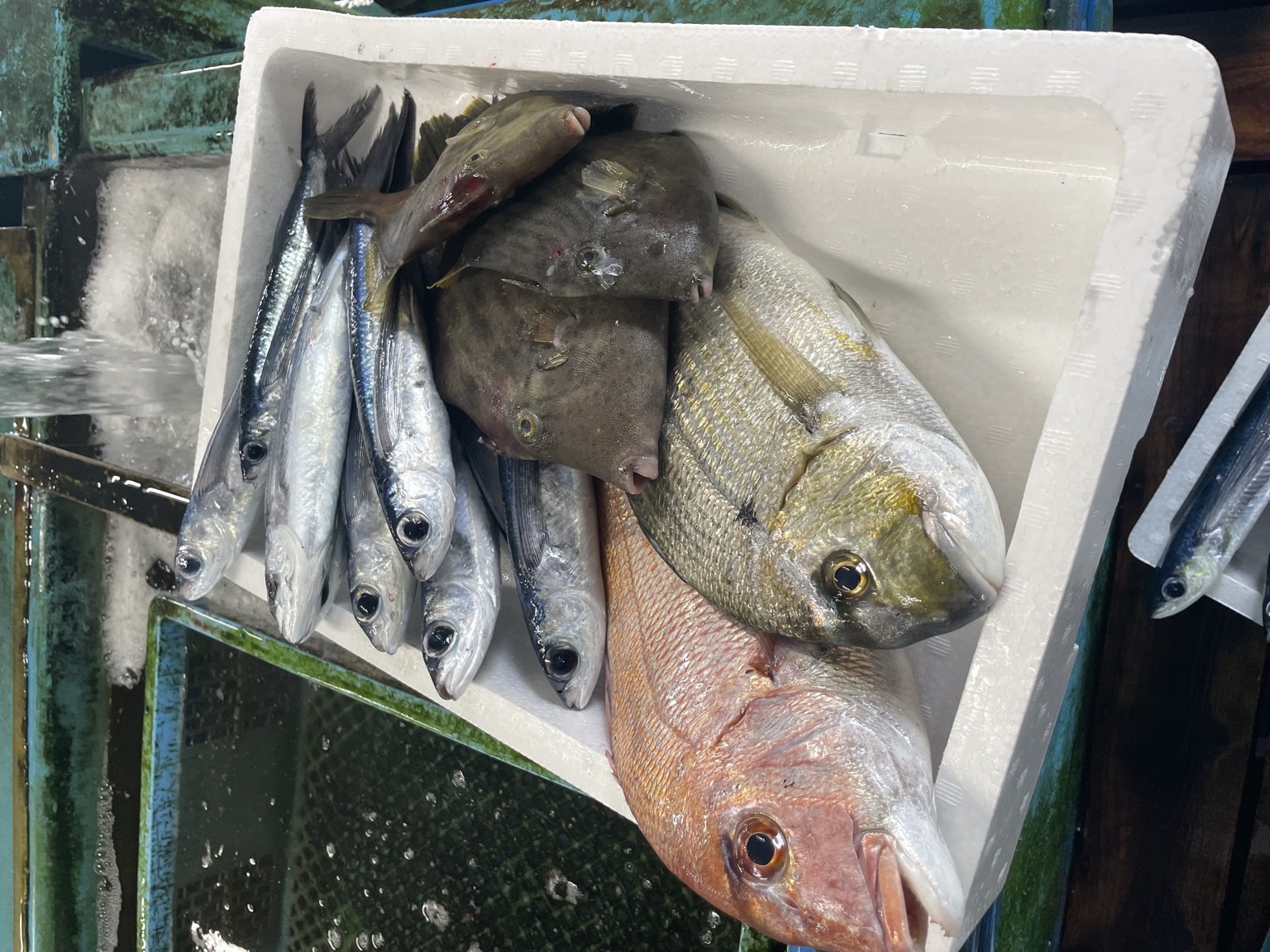 トビウオ、ヘダイ、本カワハギ、マダイ