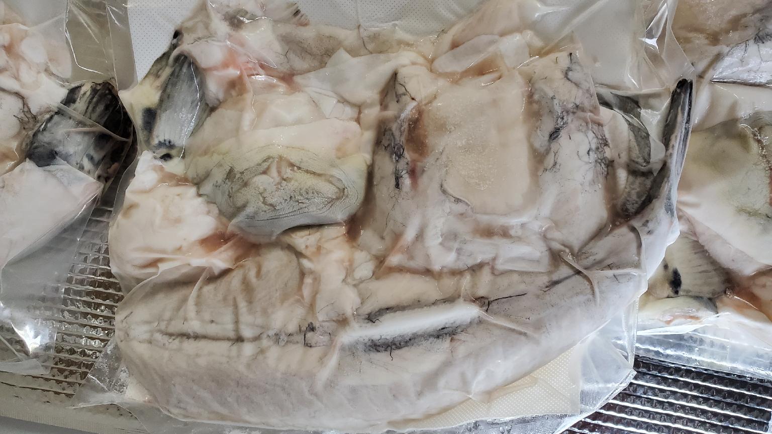 冷凍養殖トラフグ身欠き5匹 1.5~1.3kgサイズを加工してます。生ヒレ、生皮。吸水シートを入れて真空、-60℃アルコール急速冷凍。 キロ数は多少前後します‼️