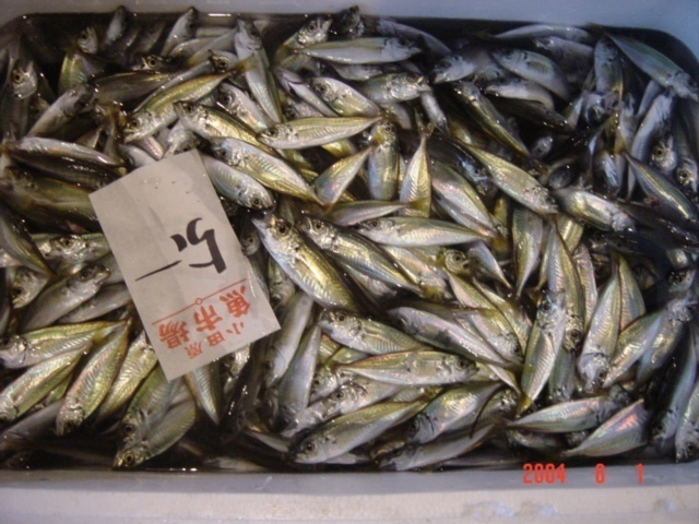 春先に孵化した幼魚たちが湾内の豊富なプランクトンを餌として夏に向けてすくすくと育っています、中でもアジの幼魚の”じんだ”または、豆アジと呼ばれ3~4cm程度の豆豆アジ、4~5㎝程の豆アジは相模湾の多種の幼魚の中でも特に人気です。