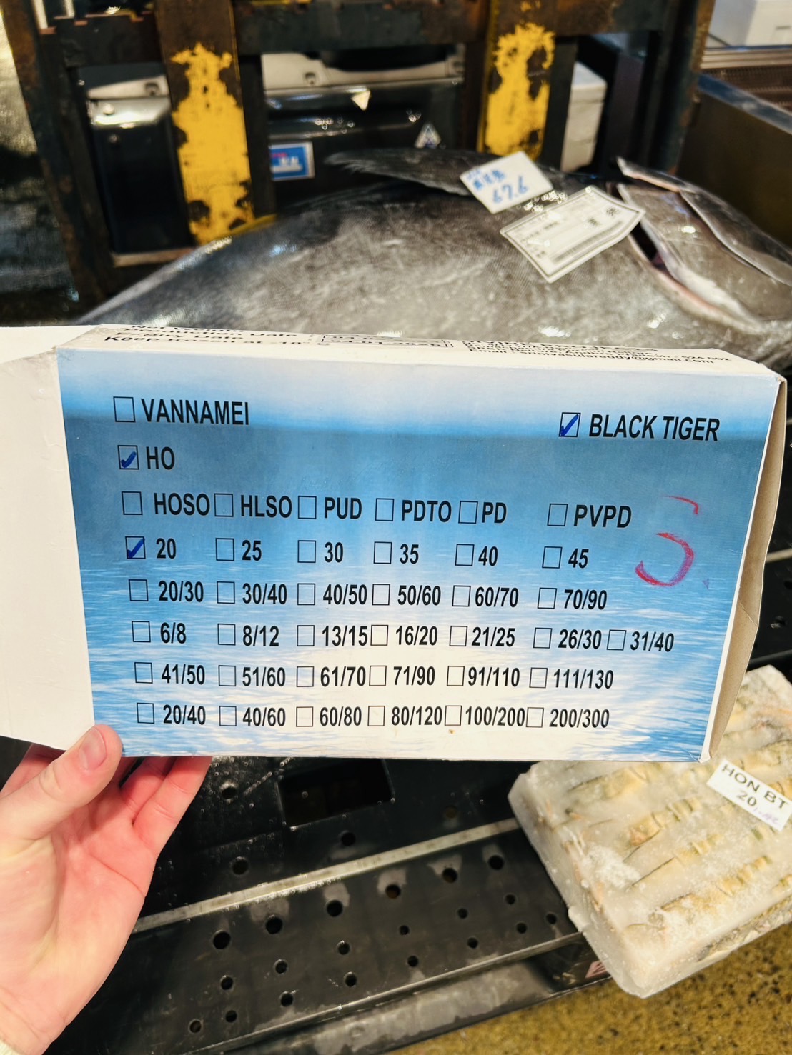【これからの季節需要高いです❗️】 インド産・海水養殖の “ブラックタイガー”になります✨ [生冷凍・有頭・アイスブロック] 荷姿はケース/1.3k×6箱入 箱/20尾(尾/約23㎝前後・尾/約65g前後) 単箱から販売します。 メーカー規格の1番大きいサイズになります。 養殖場より加工場へ迅速に 搬入→洗浄→ブロック凍結 する事で、鮮度面はもちろん、 旨味や海老特有のプリプリした食感を、 味わえる良い商品です✨ 賞味期限:2026/4/1 −18℃以下保存 1尾単価を下げれるように頑張りました🙌 🉐🉐🉐です❗️
