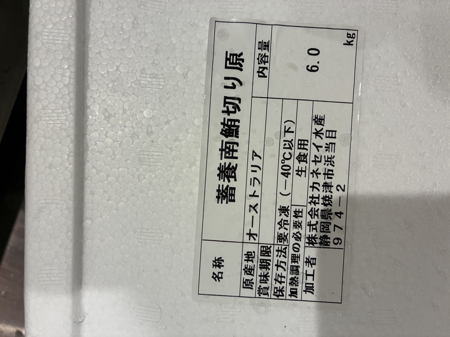 オーストラリア 蓄養南まぐろ(中トロ)不定形サク 切落し原料に 6k箱 歩留りほぼ100%