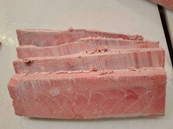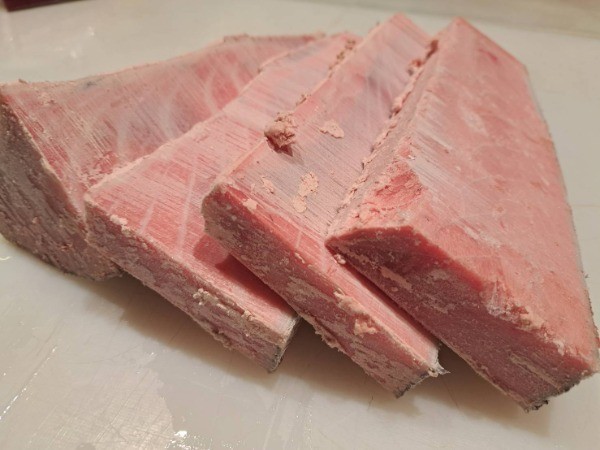 冷凍養殖本鮪大トロ ハラス(ハラモ)のご案内 マグロの中でも最高級品とされている本マグロの中でもとくに人気が高い大トロです。 200kg以上の本マグロの腹(ハラモ)部分を冊にした大トロ商材です。 特に脂がのった大型の本鮪のみを選別しました。 血合いも骨もありませんので歩留まりも良いですし、冊に加工していますので扱いやすいです。 ※通常2.5cmほどの冊で加工していますがブロックでの納品や冊の厚みは柔軟に対応できます。 ※上記以外の規格であれば、お手数ですが、その都度コメント欄に記入をお願いいたします。 脂のノリも色持ちも良い地中海の本マグロです! 品質:上品です。Sグレード 脂のノリも色持ちも最上級です!お勧めです! 商品によりますが10kgまでなら1ケースに同梱いたします。