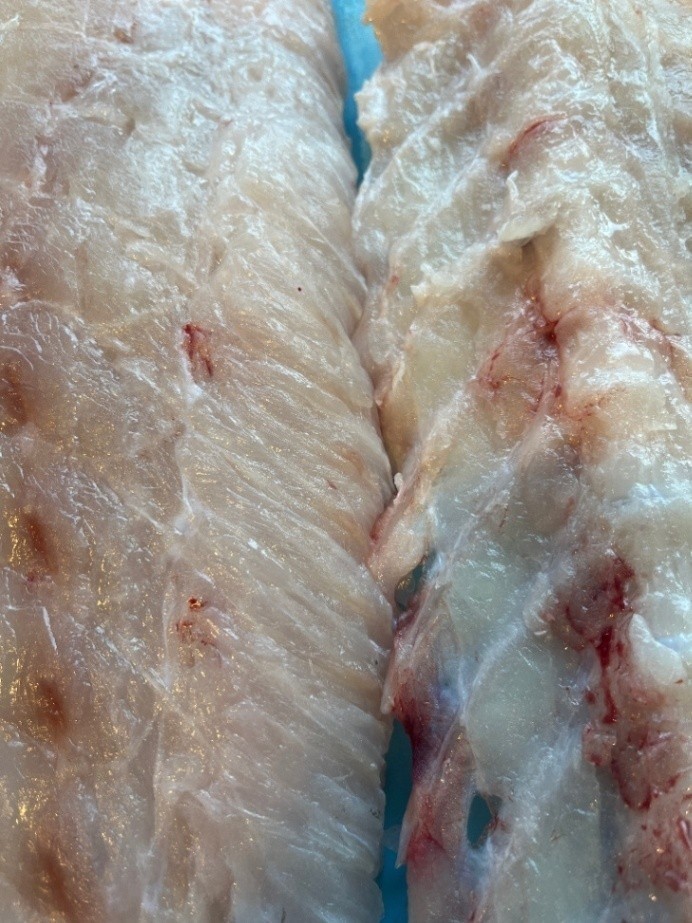 相模湾産 天然活〆クエ【九絵】(大型6~30㎏サイズ)分解後の腹側骨付き身(生食可能鮮度 皮付き骨付きの身小分けブロック〔ウロコすき引き済〕 200~500g真空パック1段約2kg