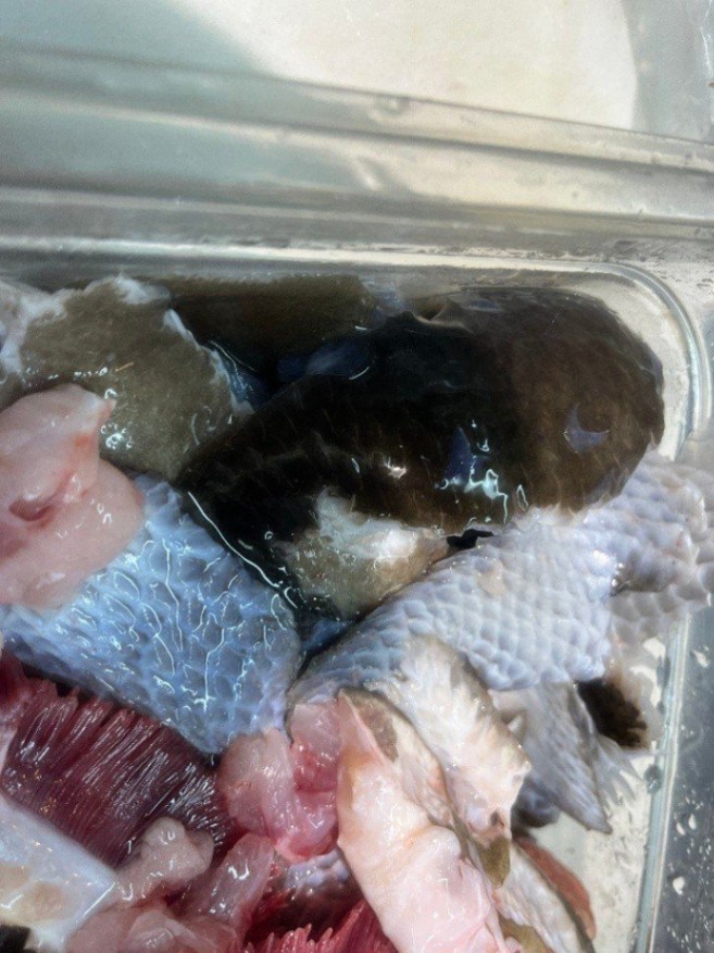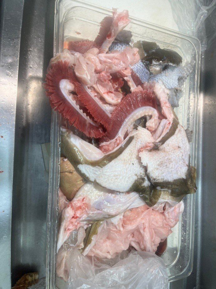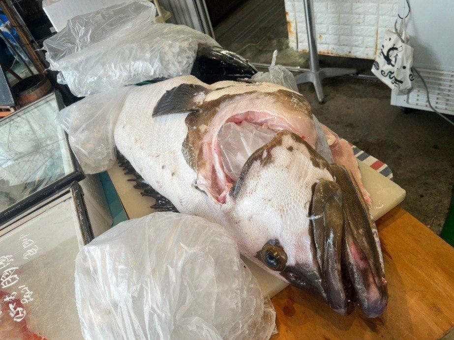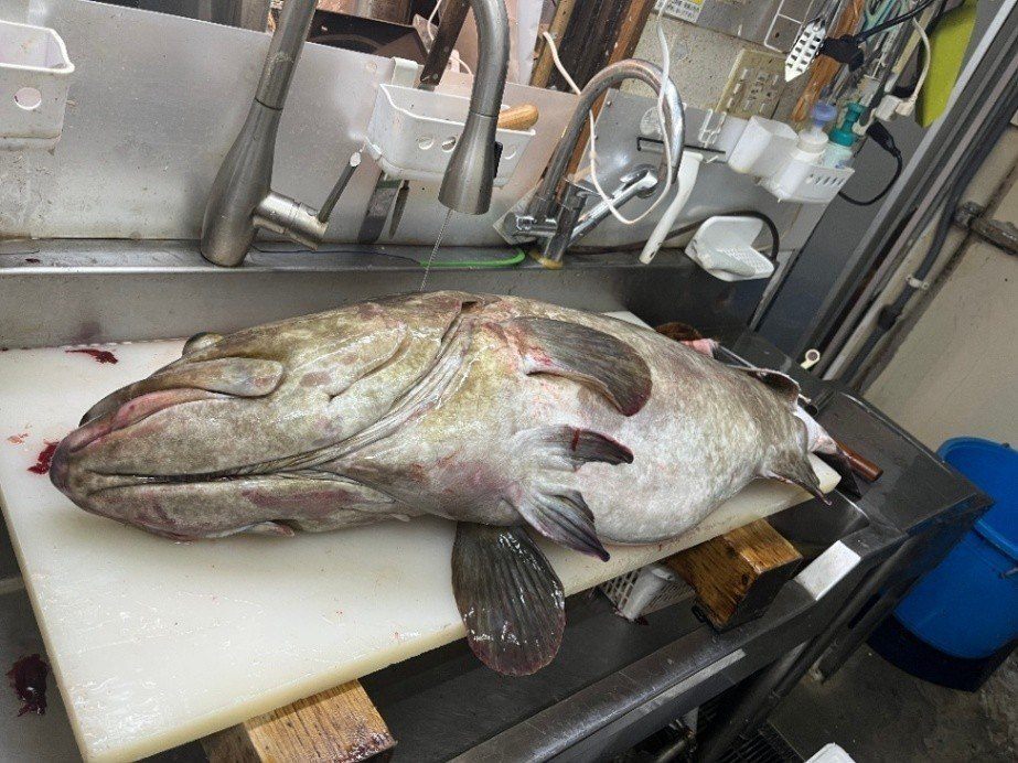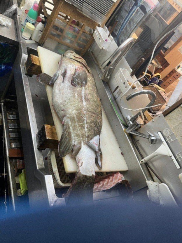 相模湾産 天然活〆クエ【九絵】(大型6~30㎏サイズ)(アラと上身 生食可能鮮度 のセット、皮付き骨付きの身小分けブロック〔上身はウロコすき引き済〕 とアラ 真空パック約1.5kg