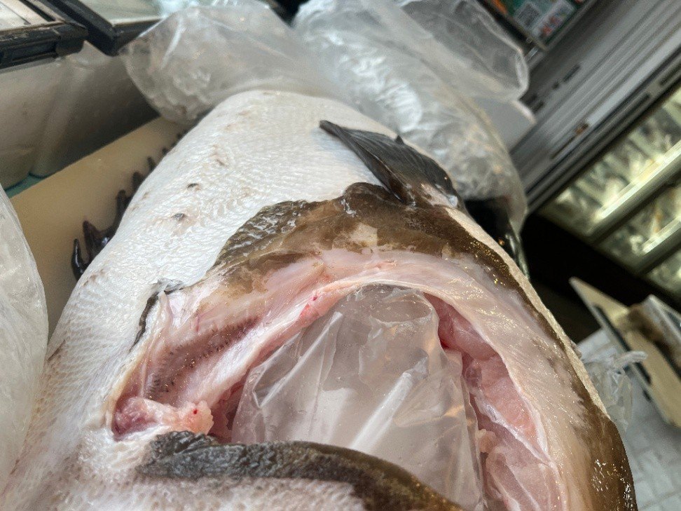 相模湾産 天然活〆クエ【九絵】(大型6~30㎏サイズ)分解後の腹側骨付き身(皮付き骨付きの身小分けブロック〔ウロコすき引き済〕 200~500g真空パック1段約1kg 約1kg/尾 | ¥- 利用登録して確認 | ケース |