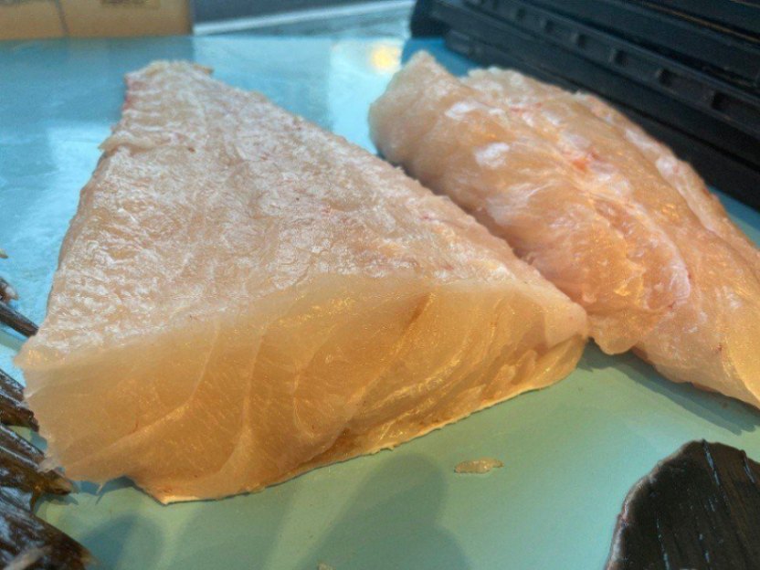 相模湾産 天然活〆クエ【九絵】(大型6~30㎏サイズ)分解後の上身(生食可能鮮度 皮付きの上身小分けブロック〔ウロコすき引き済〕 200~500g真空パック1段約1kg