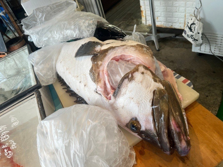 相模湾産 天然活〆クエ【九絵】(大型6~30㎏サイズ)(アラと上身のセット、皮付き骨付きの身小分けブロック〔上身はウロコすき引き済〕 とアラ 真空パック約3kg