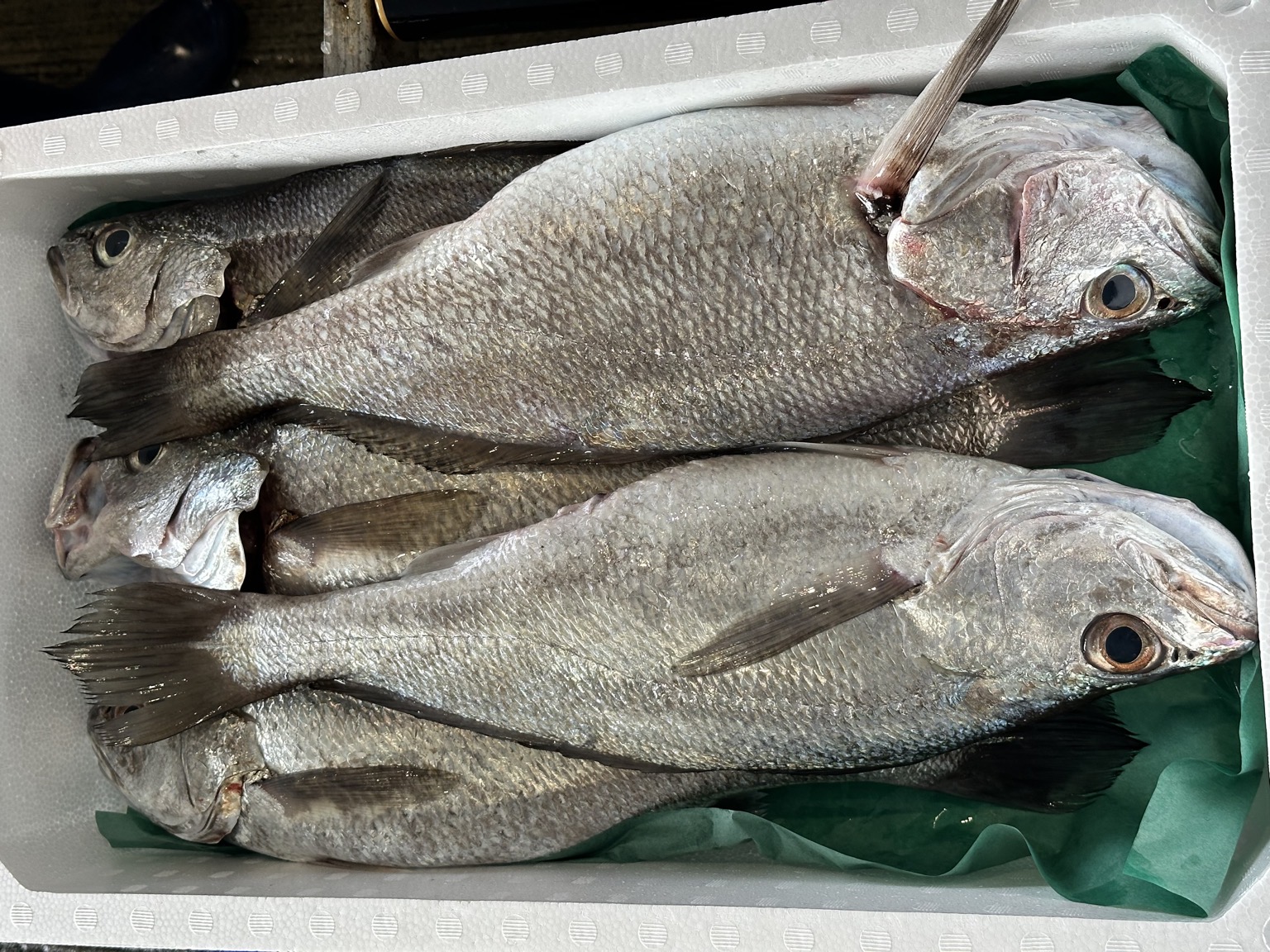 クログチ身は少し柔らかめ。5入約7.7kg(沿岸)