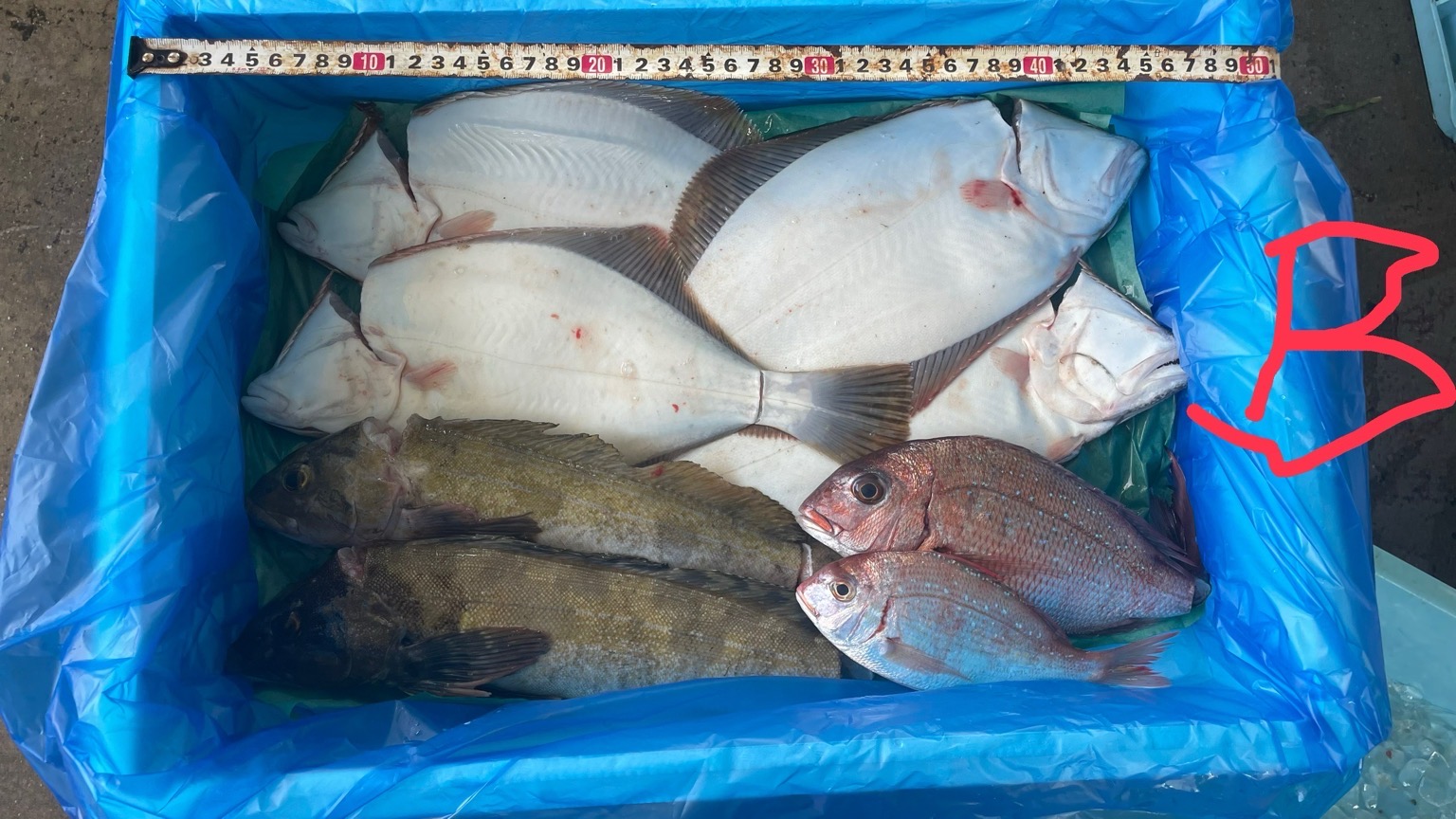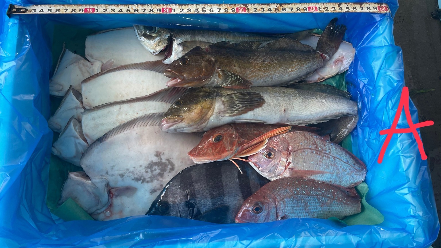 アイナメ、イシガレイ、イシダイ、サメガレイ、チダイ、ヒラメ、ホウボウ、マアジ、マコガレイ