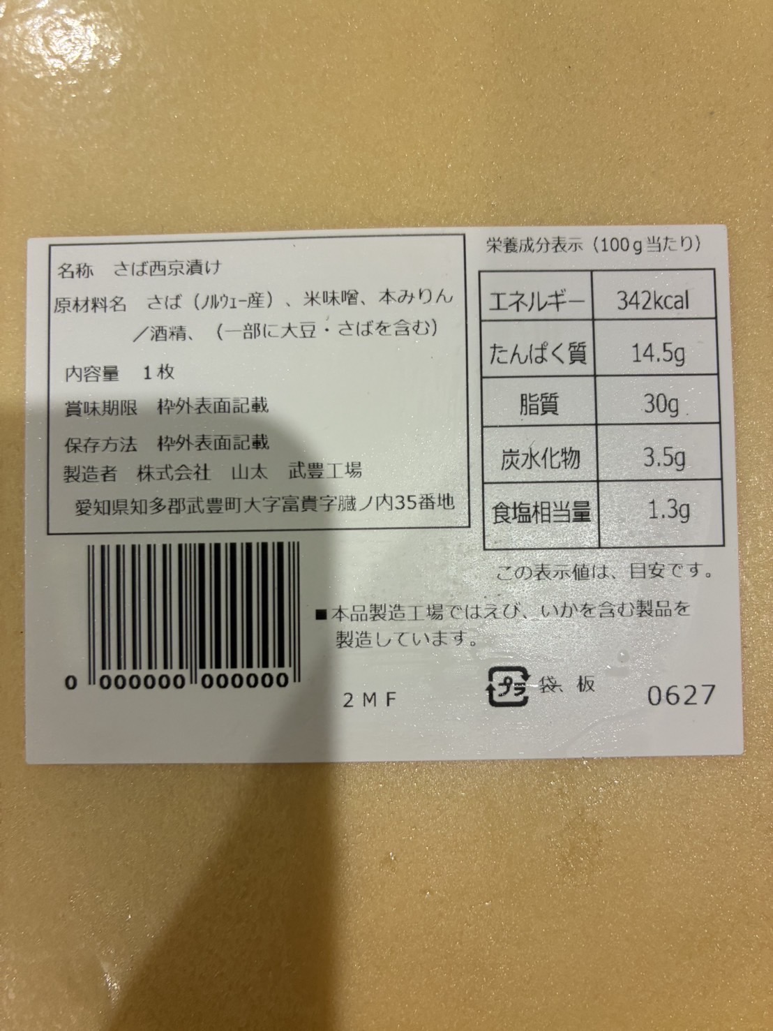 ノルウェー産 さば西京漬 1枚板付真空 約束150g 10p入