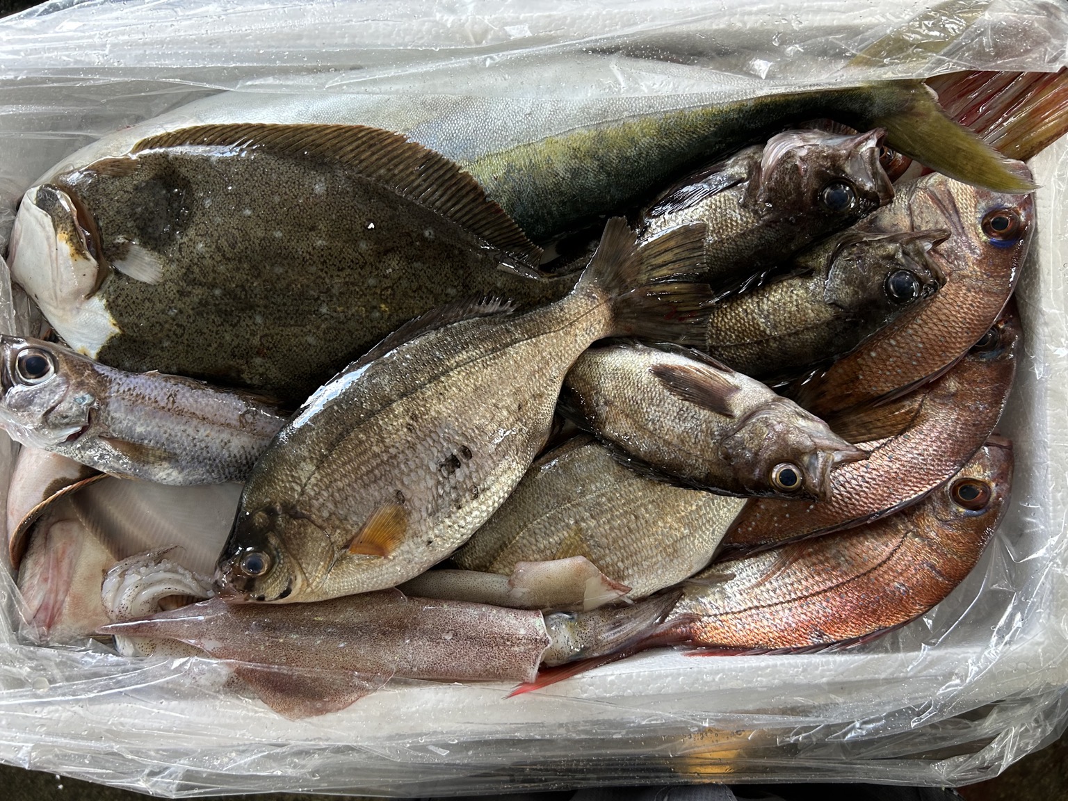 イナダ、スルメイカバラ、タナゴ、ナメタガレイ、ヒラメ、マダイ、メバル