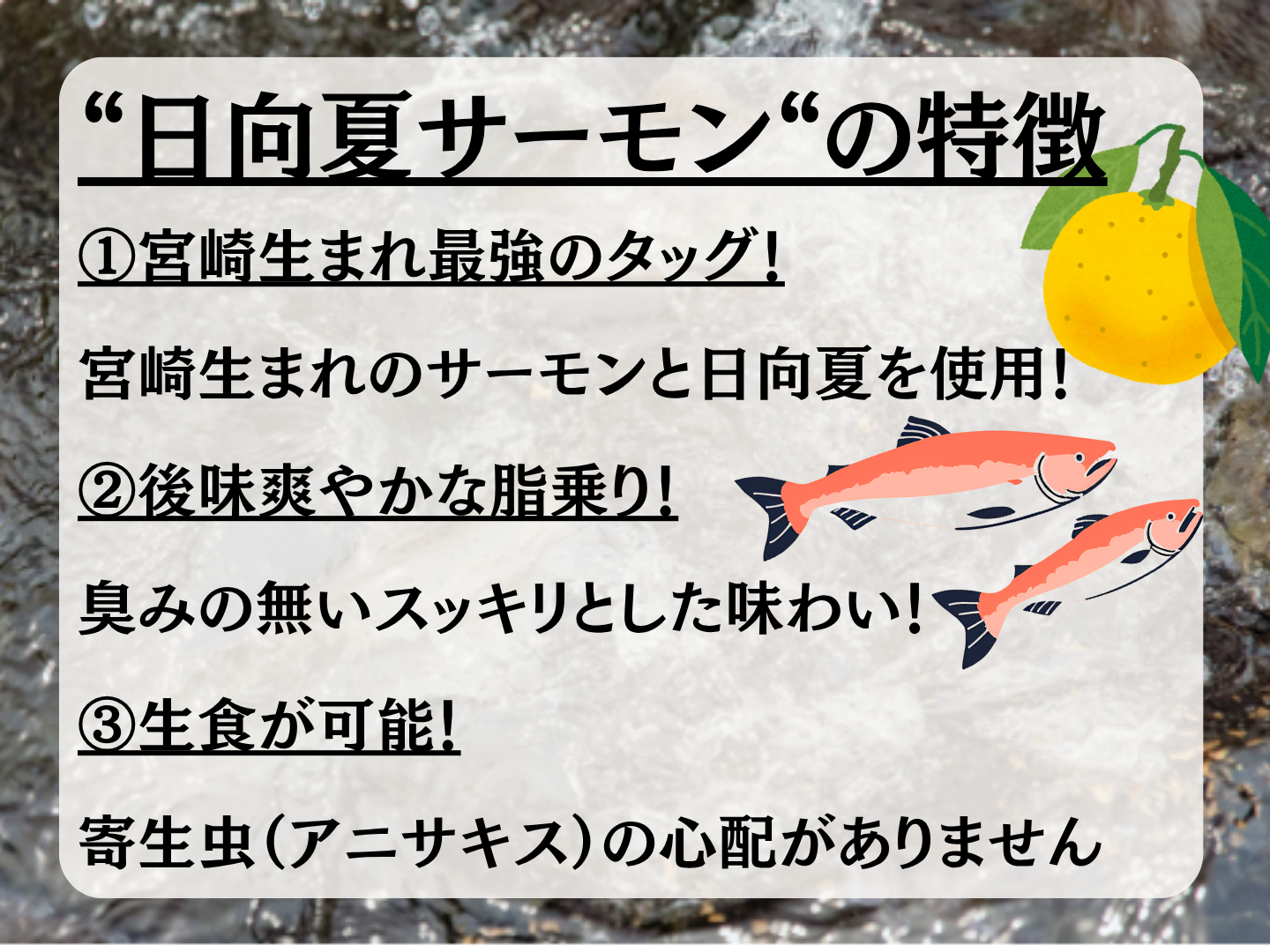 【生サーモン!!】日向夏サーモン 宮崎県延岡市で養殖しているサクラマスになります。 11年連続で清流に選ばれている五ヶ瀬川の伏流水を掛け流して育てております。 水が綺麗な為臭みが全く無く、ほんのり甘い脂乗りが特徴です。 寄生虫の心配が無いため、凍結せずに生食可能です。 また、宮崎県特産品である日向夏を餌に混ぜております。 日向夏に含まれる成分で、より臭みがなく誰でも食べやすい味わいに仕上がります。 後味爽やかな脂のりと臭みのないすっくりとした味わいが特徴です。 発注頂いた分だけ水揚げし延髄を切って血抜き、氷パックで梱包してお届けします。 平均1.4k/尾サイズを6尾・4尾入れております。 ※7/23出荷分を購入受付中です🚚 ※写真3枚目のMDシールの同梱も可能です。 4尾入:20枚、6尾入:30枚 必要であれば発注の際に「出品者へのご要望欄」に記載して下さい。 ※3ケース以上ご発注頂ければ、他曜日(土日除く)の出荷も対応可能ですので、ぜひぜひご相談下さい🙌