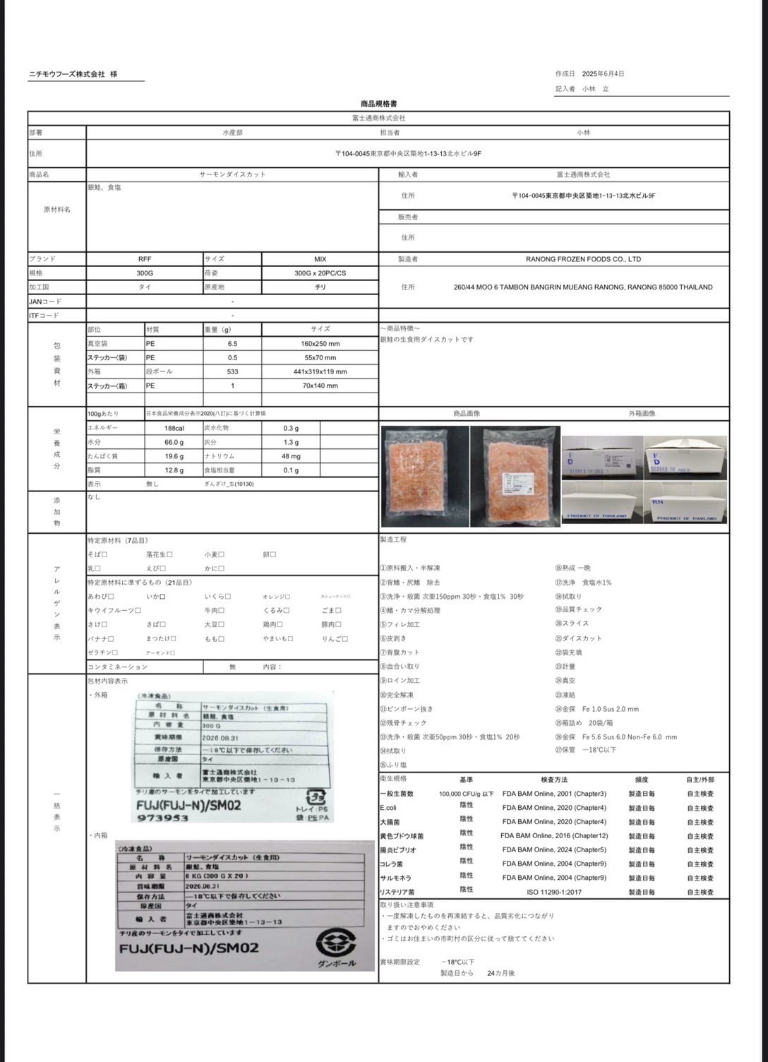 チリ/タイ加工 生食用 サーモンダイスカット300g 銀鮭使用 20p入