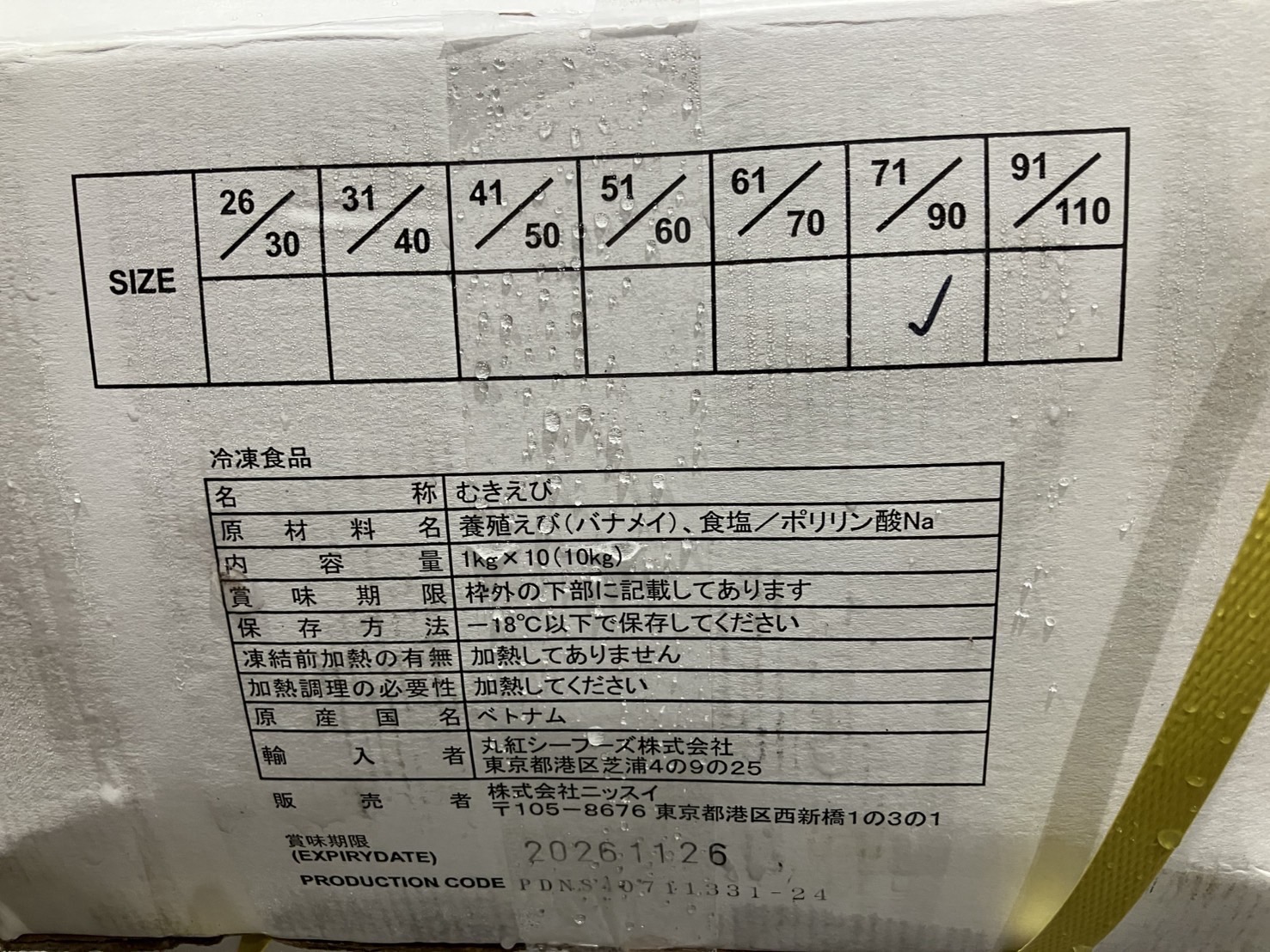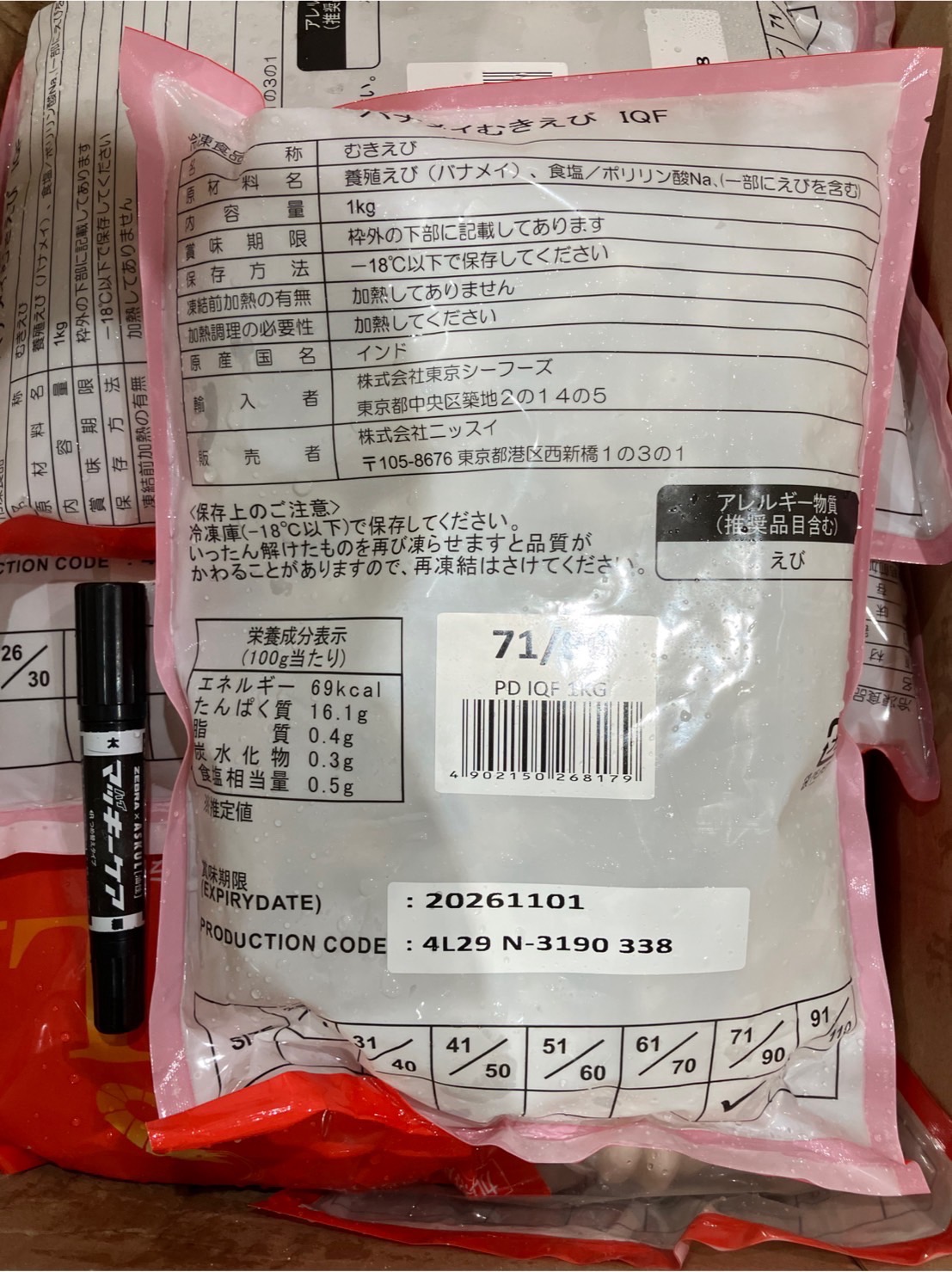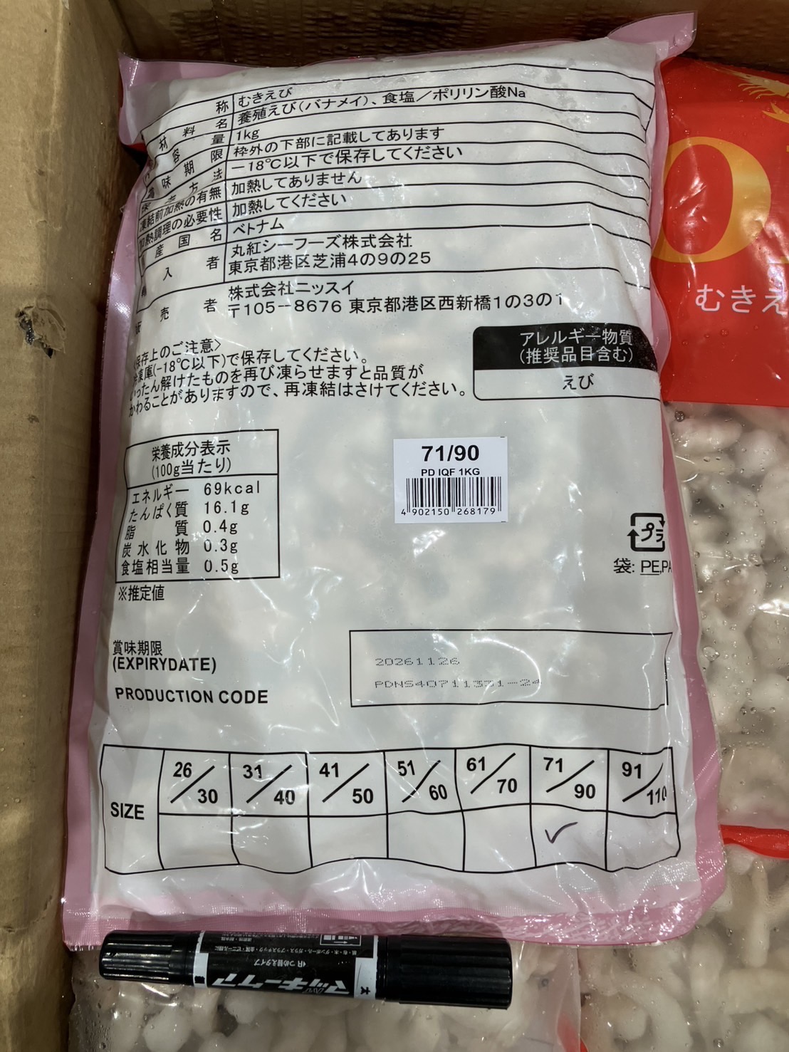 ベトナム産 バナメイ むきえび71/90 ネット1k 10k入