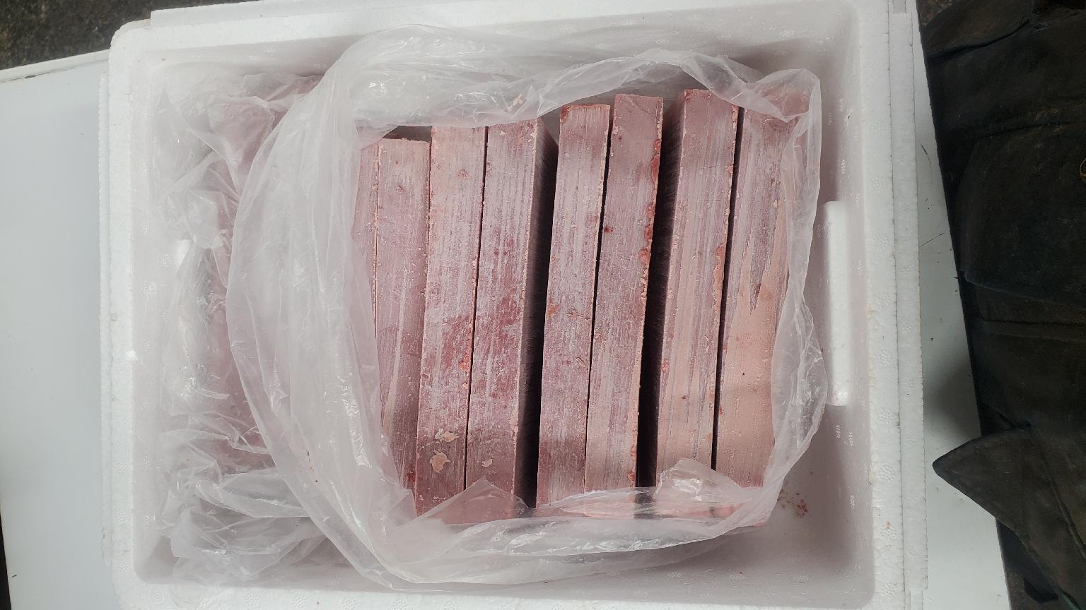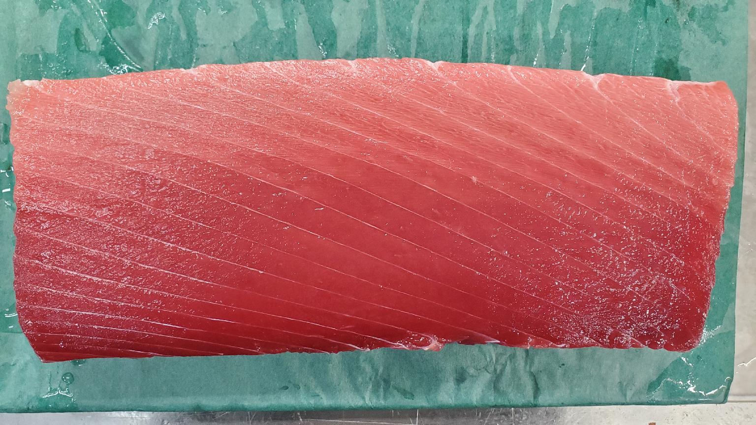天然インドマグロ刺身用冷凍サク約500g皮付き ★規格 およそ20×8×2cm 魚体およそ50~60㎏ 背と腹中のカワラをサク取り 薄め脂のリーズナブル品 ★荷姿 約500g×6サク入/スチロール箱 袋詰め ドライアイス同梱