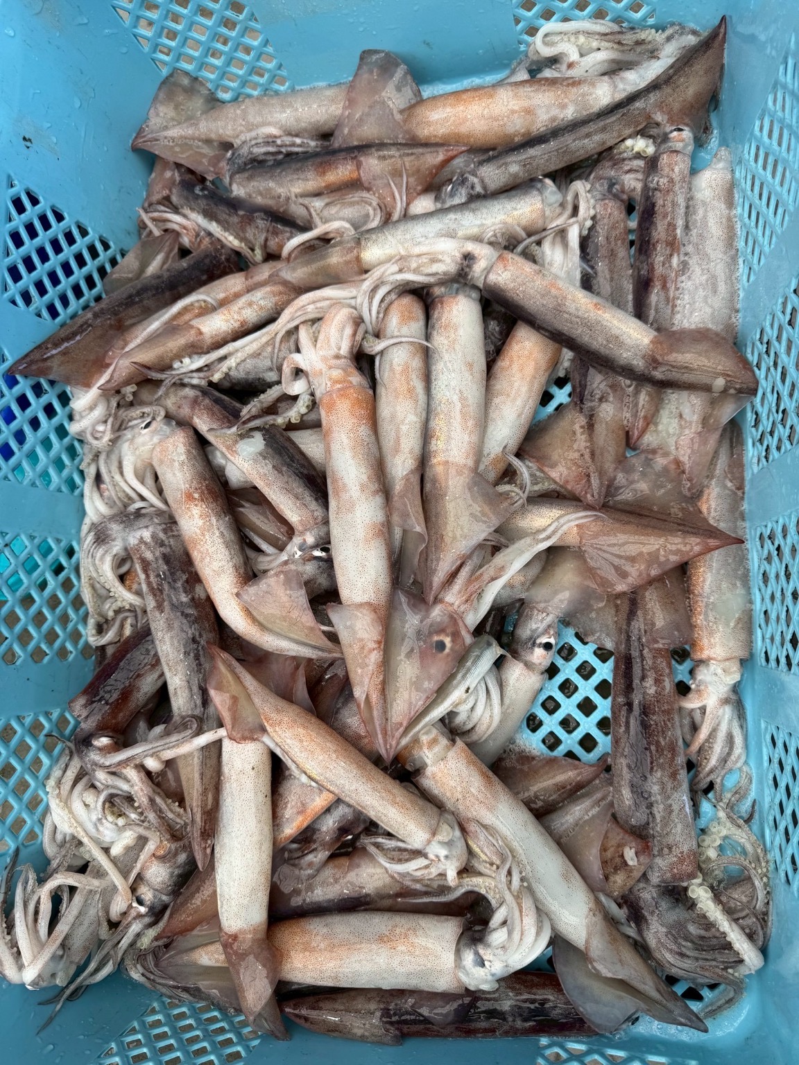 底引きのスルメイカです! 70g主体、50g-100g混ざり バラで5キロ仕立てです 水氷で仕立てます 写真は過去のものです