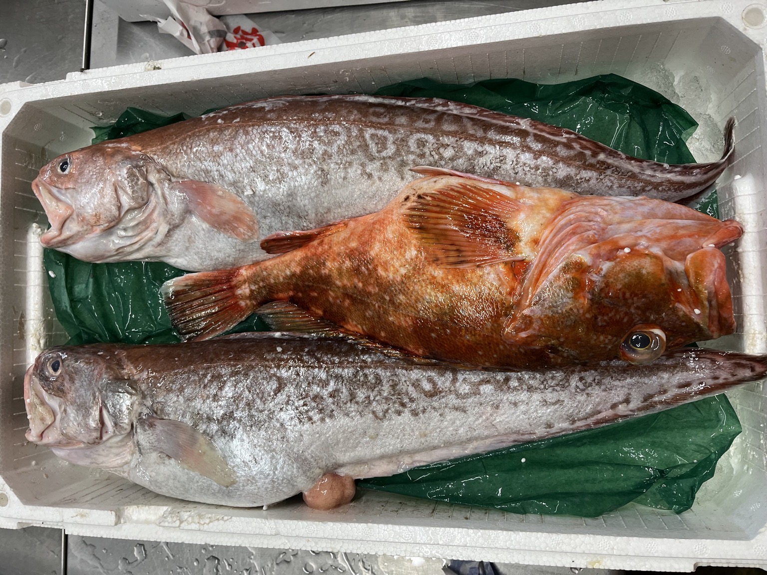日帰り漁の底曳網で水揚げされました。 ヨロイイタチウオ2尾2.8k カサゴ1尾1.1k