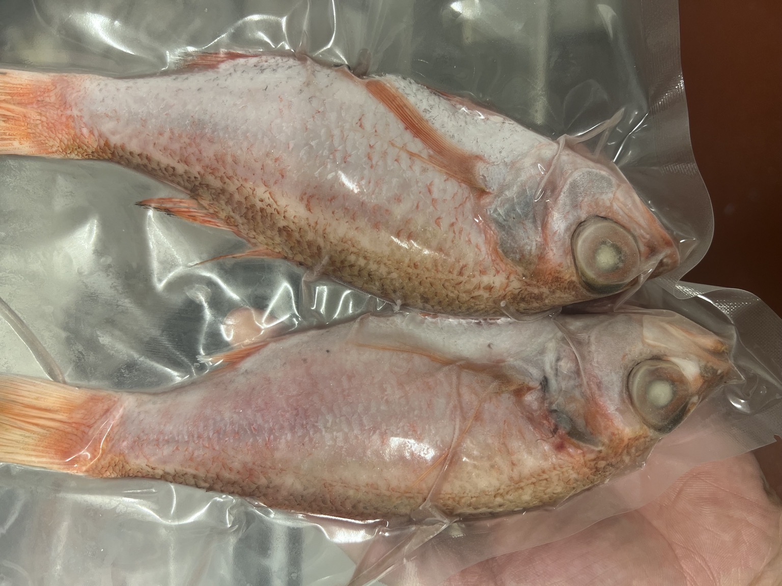 福井県産、冷凍ノドグロ 日戻り底曳き網漁 全て福井県産、産地自社加工です。 鱗、内臓、エラ処理済み、真空包装になっております。 今年10月に真空冷凍した物です。 1パック、2尾入りになってます。 高鮮度の状態から冷凍かけてますが、底引き網のノドグロなので最初から腹が緩いのも混じってるかもしれません。炙りならいけると思いますが、加熱用オススメです。 商品内容など不明点あればご質問ください だいたいサイズは揃えてあります ※販売値は原体からのキロ単価売りです。鱗、内臓処理した分の目方は減ってます クロネコヤマト冷凍便出荷します