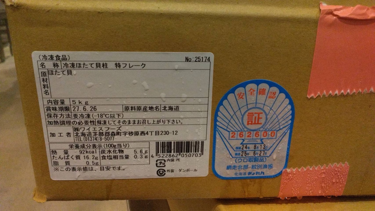 ホタテ貝柱 特フレークのご案内でございます。 クズレも少なく刺身でもちろんいけます。 荷姿 5kg x2合(10kg)