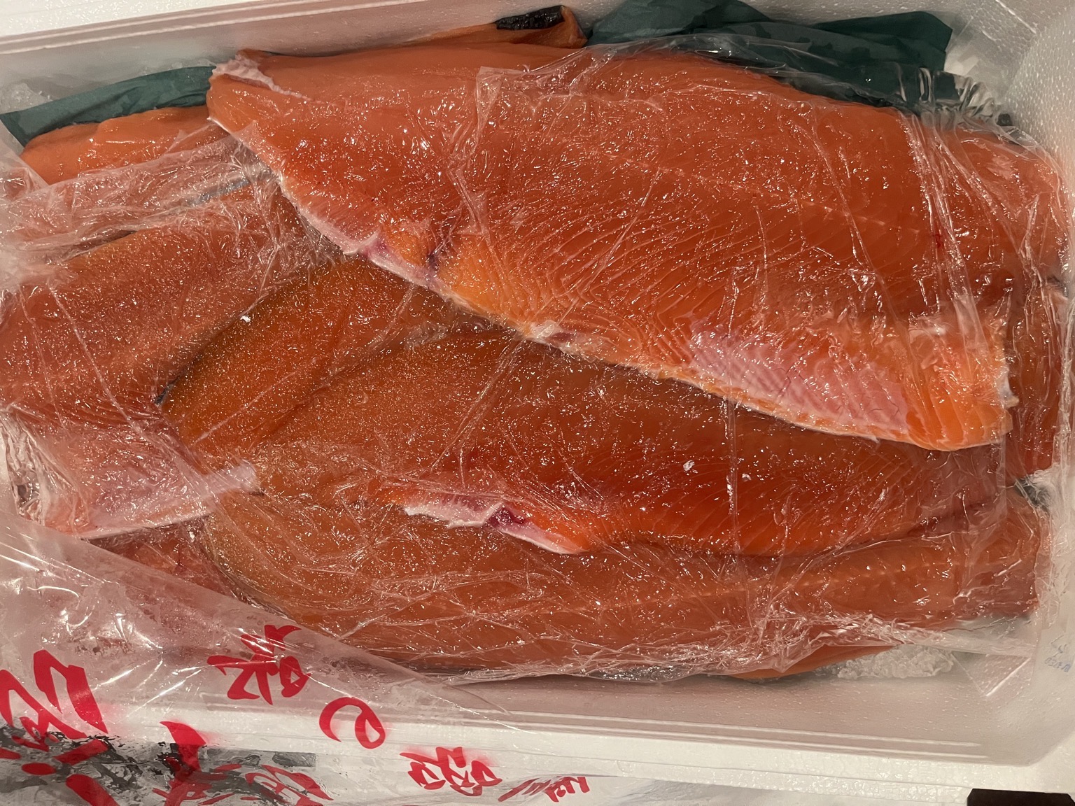 生秋鮭フィーレです。 5k 7〜9入り カマ取り、鱗取り、腹骨取りです。 色味良しのA品です❗️
