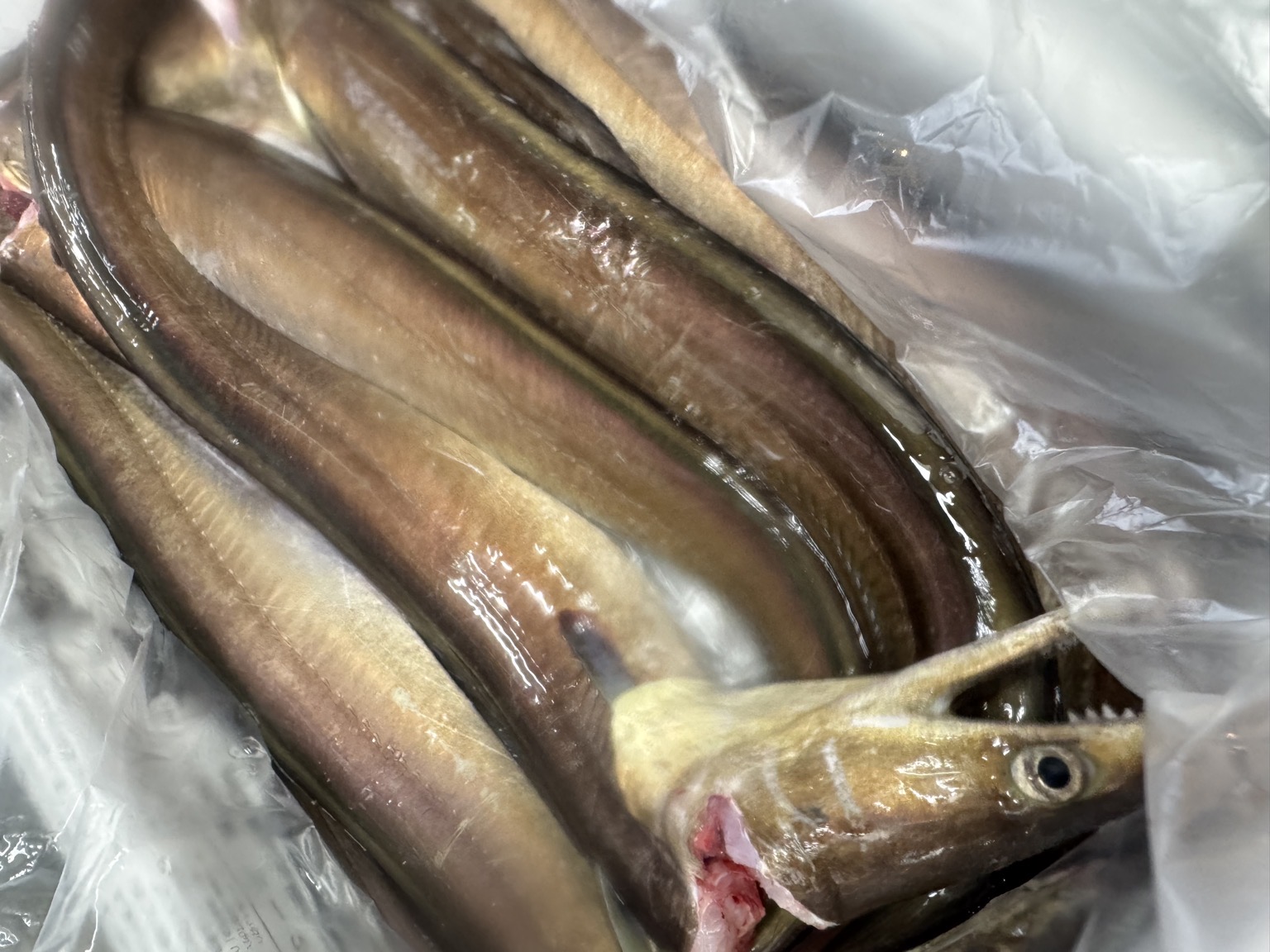明石のハモ!活け越しハモ出荷前に活け〆神経抜き致します〜 市場便のお客様はポンプ別途で可能ですのでご要望ください。ヤマト便はポンプ出荷できません。