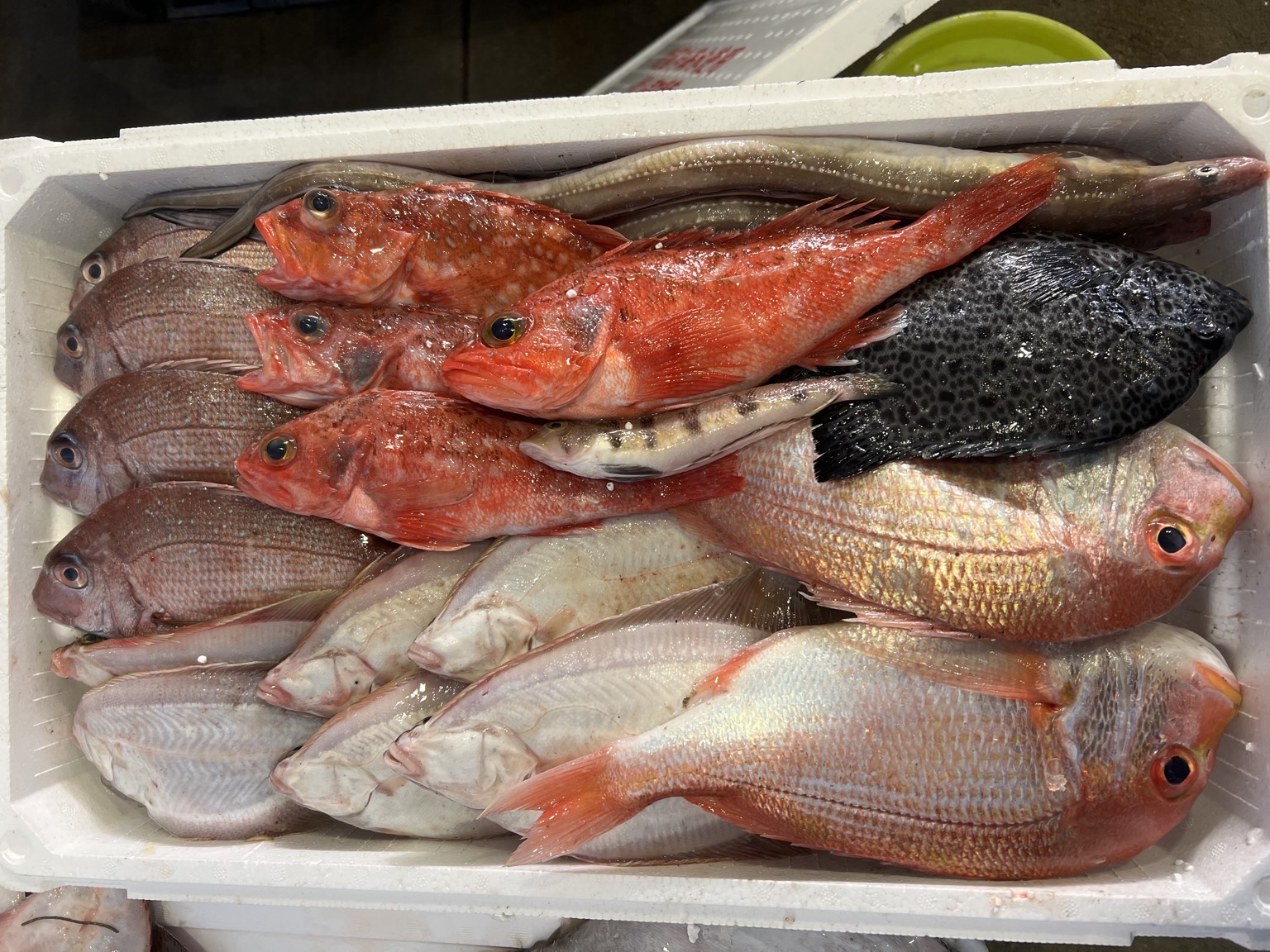 アナゴ、イシガキダイ、トラハゼ、マダイ、ユメカサゴ、レンコダイ