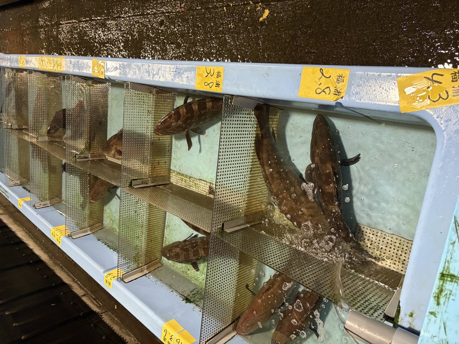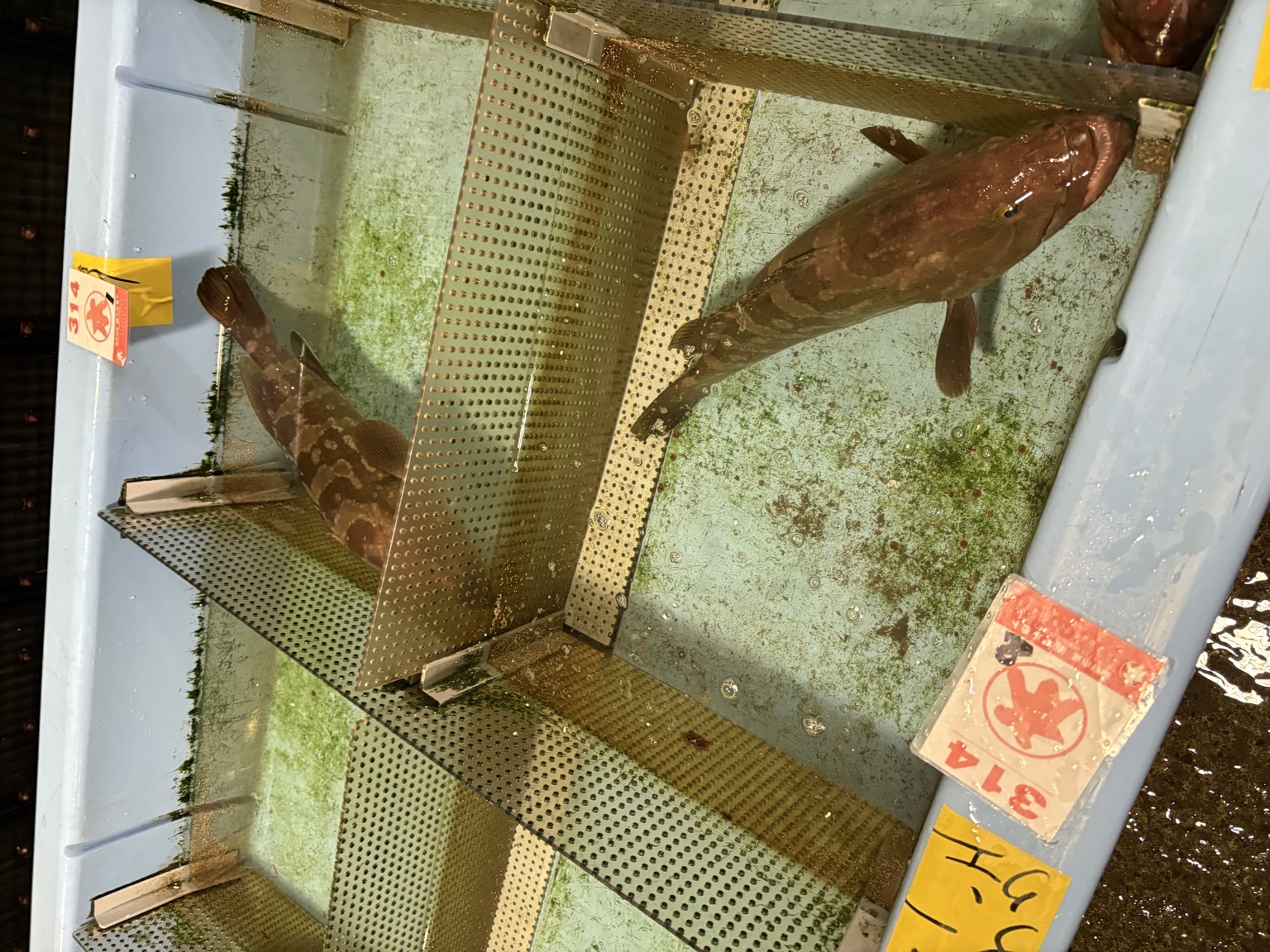 相模湾産 天然 活クエ【九絵】出荷直前に活け締め、だっけつ、神経抜きで保鮮処理して出荷 特徴 近年、海水温の上昇と共に、相模湾の沿岸に大型のクエが住み着くようになりました。餌を求めてか?江の島から大磯、伊豆方面の定置網に入網することが近年多くなっています。 クエ(あら)と言えば紀州・九州が有名ですが、相模湾のクエは太りも良く、身質、脂の乗りも極上です。 弊社では、水揚げ後、社内の生け簀で活け込みをし、クエを落ち着かせた状態で、即殺活〆・脱血・神経抜きをし、エイジングに堪えうるための保鮮処理の後、梱包いたします。。 また、別の商品ですが ”-80℃旬間冷凍シリーズ”では、ブロック・柵に分解し、瞬間凍結をかけたクエ製品です。こちらは、活〆後、分解、部位ごとに真空パックにしてあります。 上身は解凍後も身が活かり縮れます。 解凍後、保鮮紙で包み氷温保存することで更に熟成が進み経過時間ごとのクエのポテンシャルの変化を楽しむことができます。上身のみの他、上身とアラのセットもあります。 お刺身用・しゃぶしゃぶ用(皮付き骨なし)・鍋・スープ用(アラと上身