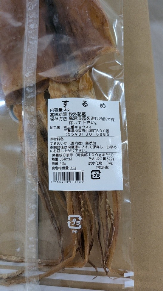 無添加干しスルメイカです。 <商品情報> 規格 :1パック約90g(2枚入) 1ケース10パック入 4ケース(4合1甲)での出荷となります ※単箱での出荷をご希望される場合は、対応可能ですのでご連絡ください。 製造者 :(株)三重キョウスイ 保管方法:常温便で出荷しますが、高温多湿を避けて保管してください。開封後は冷蔵庫で保管しお早めにお召し上がりください。 賞味期限:出荷日+89日 <食べ方・調理法> 少し炙ってお召し上がりください。