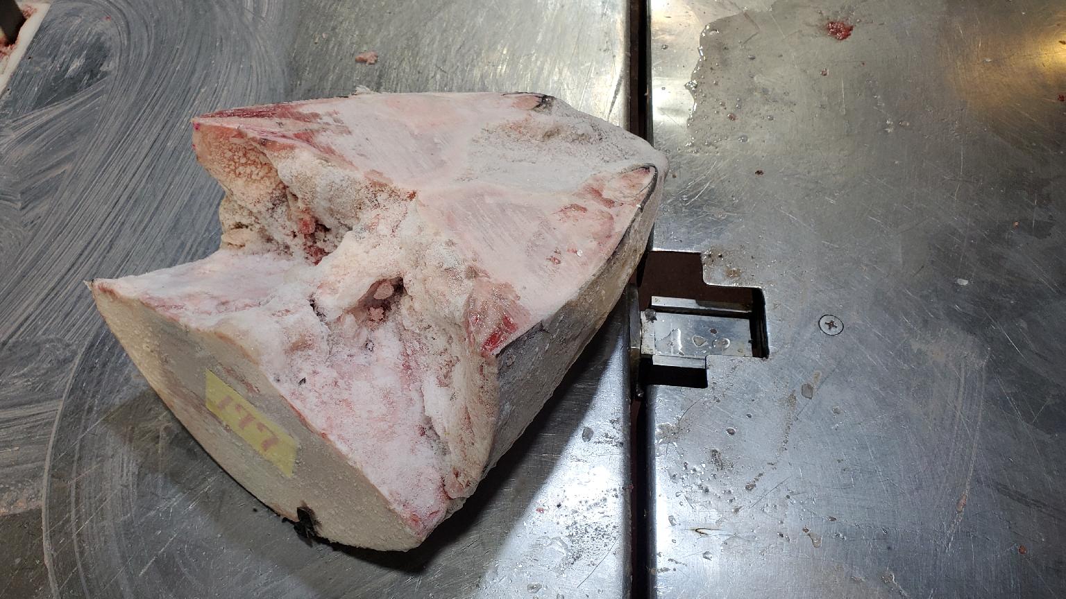 【値下げスポット】天然インドマグロ アタマ ★規格 約8㎏/個 ★荷姿 1個/スチロール箱 ★特徴 天然インドマグロのアタマをホホ上でカットした上半分の商品です。 解凍いただいた後、頭肉、目玉、目まわりの肉、背上の身の端っこが取ることが出来ます。 売場のディスプレイなどにも。
