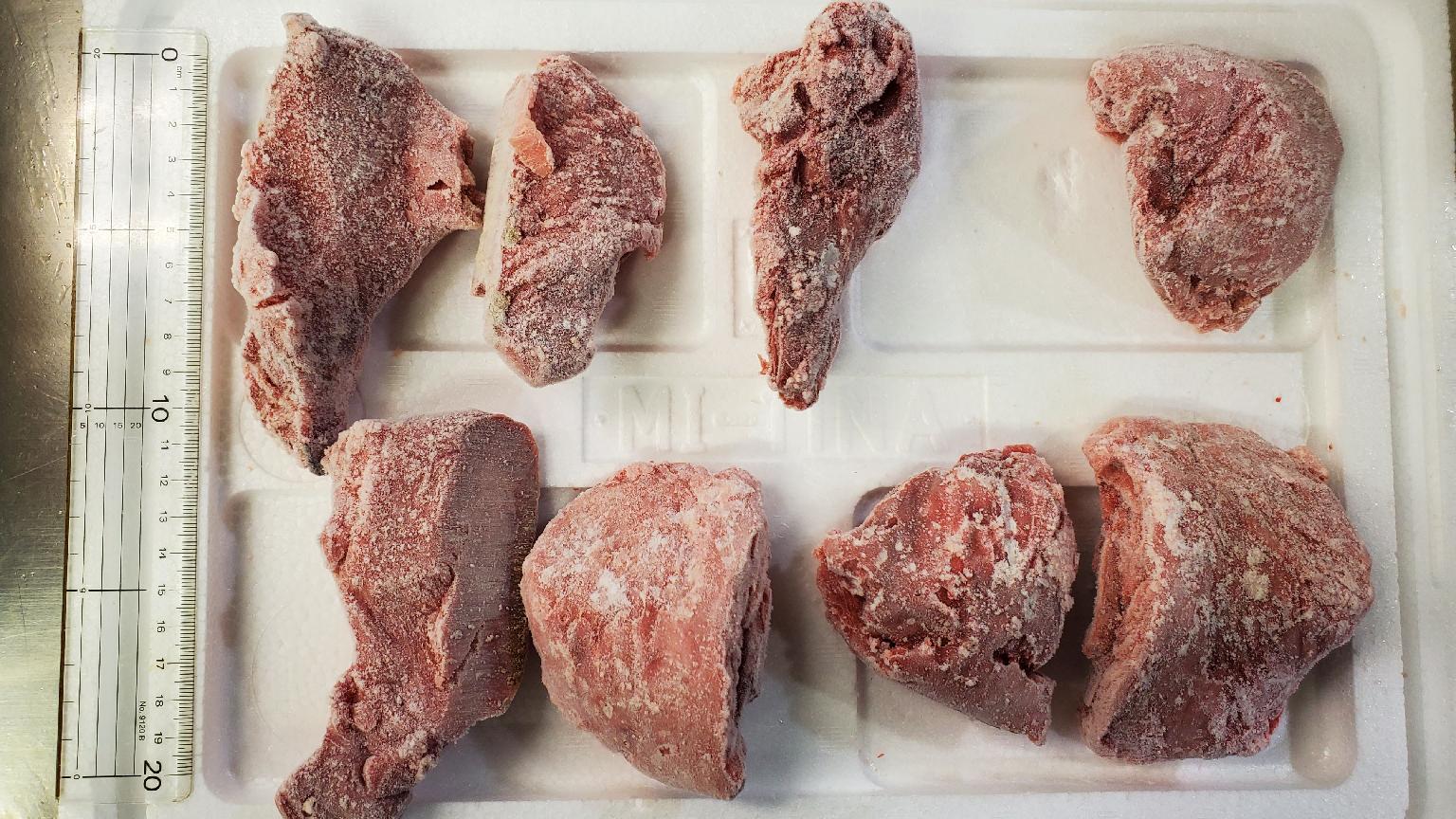 天然インドマグロ ホホ肉IQF ★規格 サイズ、グレード不指定 シミ、キズ込み ★荷姿 約3㎏/スチロール箱 ドライアイス同梱 ★特徴 煮焼きが断然オススメです。 マジックソルトのステーキ、照り焼き定食、おでんの具など。ゼラチン質がいい仕事します👍️ 鮮度的に刺身も可です。薄~く切りつけて、にんにく+岩塩+ゴマ油で食べるレバ刺風メニューは個人的にハマっています🤤
