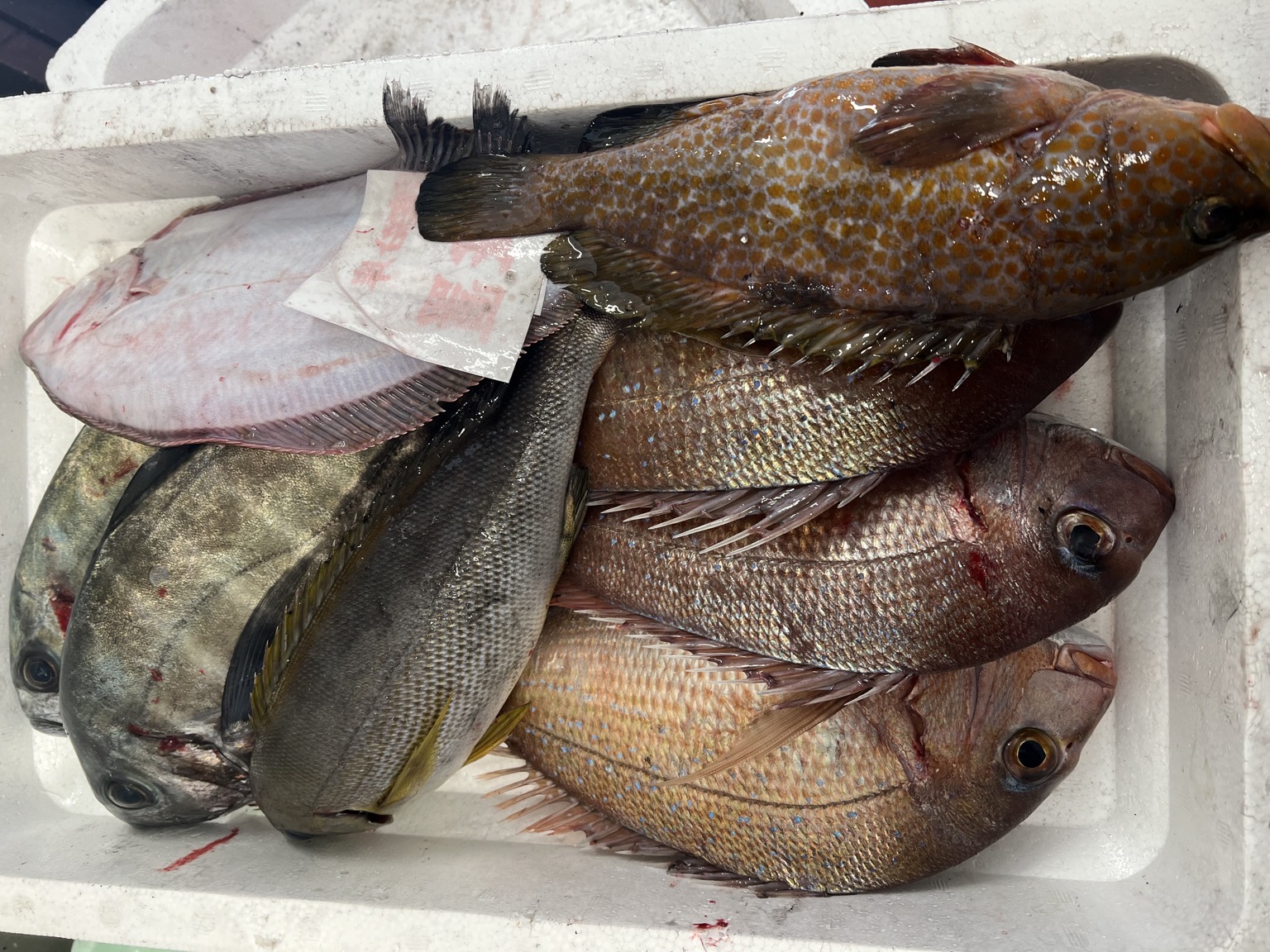 11/20水揚げ 定置網 マダイ3枚約2.3キロ オキアジ2枚約1.5キロ イサキ、キジハタ、ヒラメ各一枚 生食◯