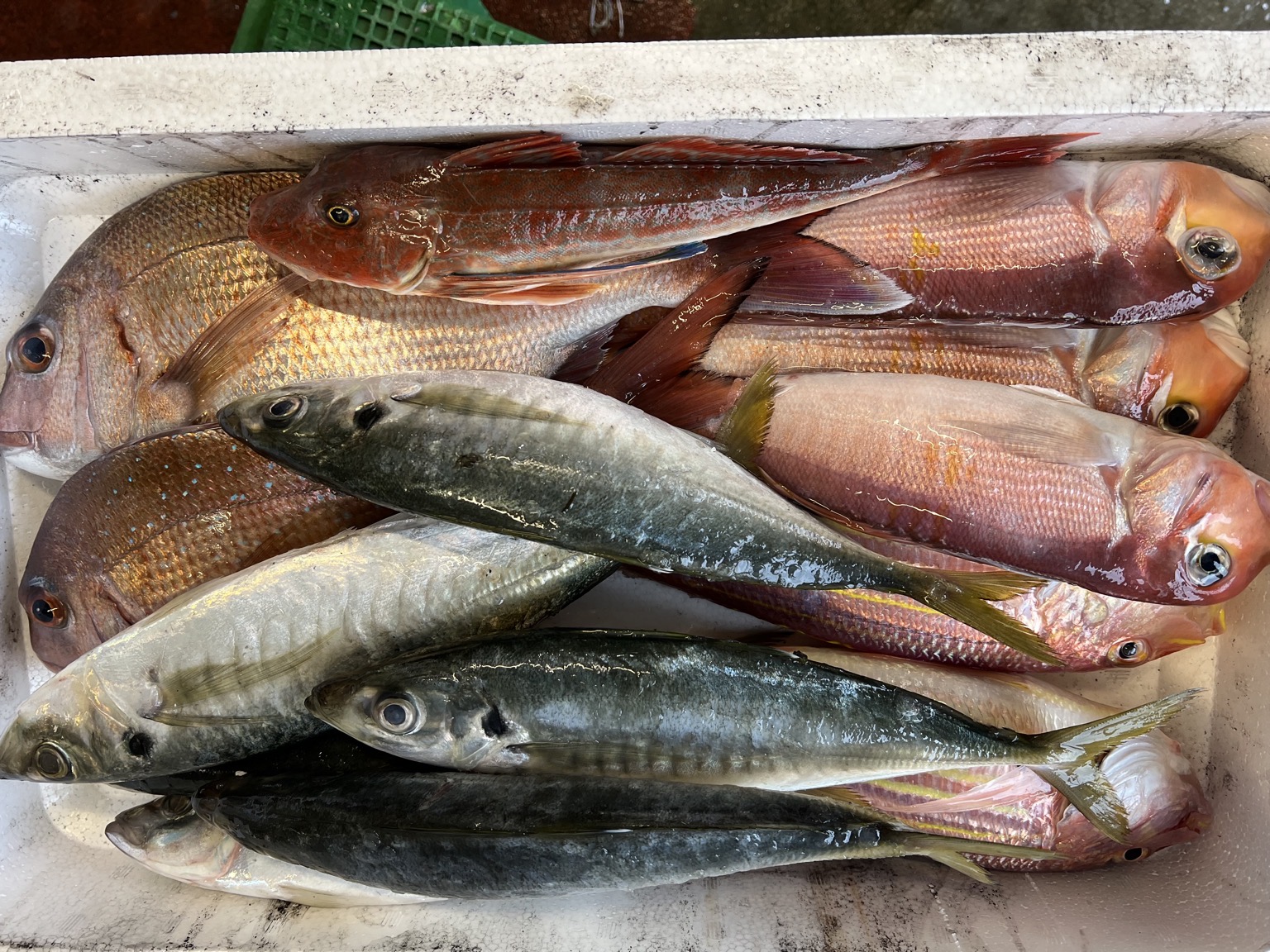 アマダイ、イトヨリダイ、ホウボウ、マダイ、マルアジ