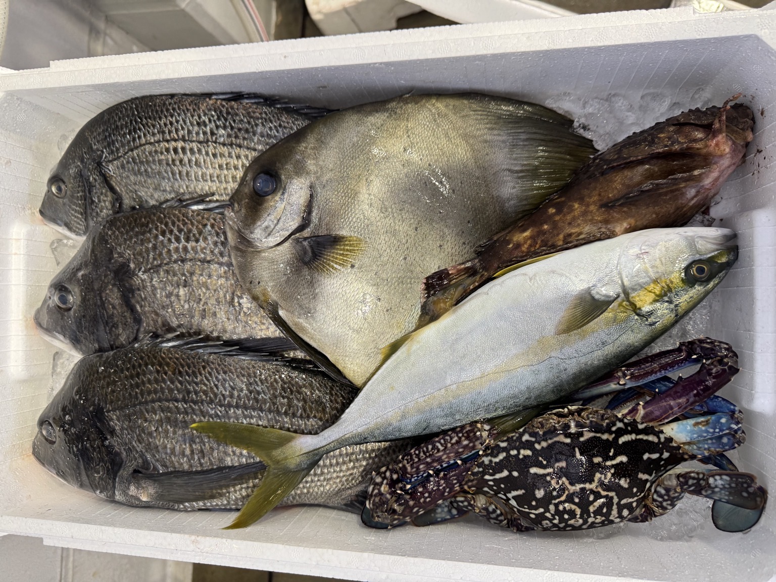 オコゼ、クロダイ、ツバメウオ、ヒラマサ、ワタリガニ
