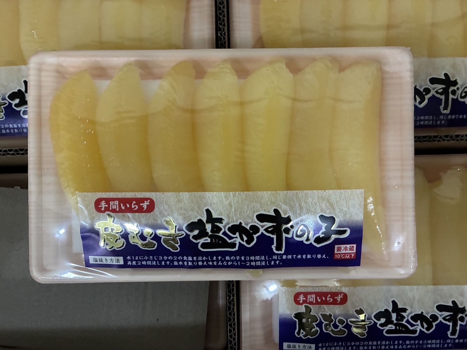 アメリカ原料 中国加工 便利な『皮むき』 皮むき塩数の子1本羽250g(6/7本) トレーパック 品物バツグン! 12p×3